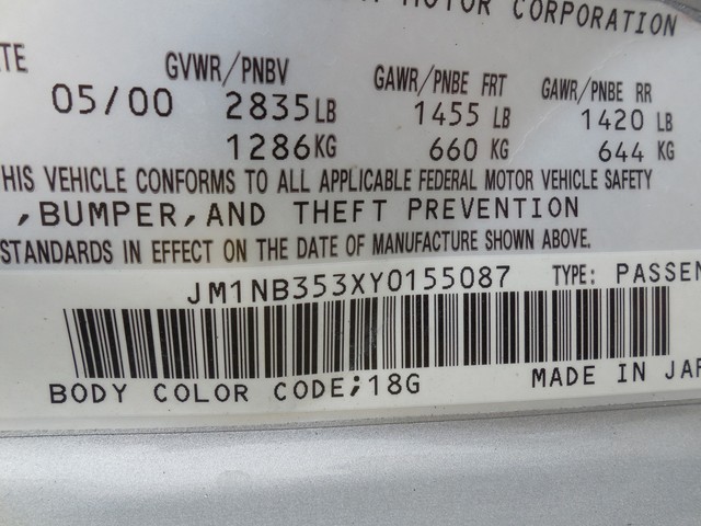 2000 Mazda MX-5 Miata JM1NB353XY0155087