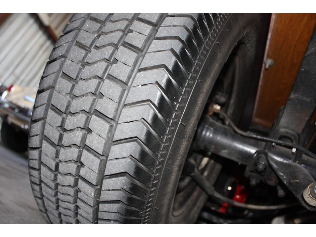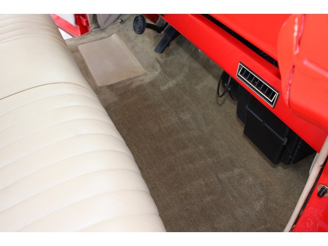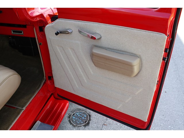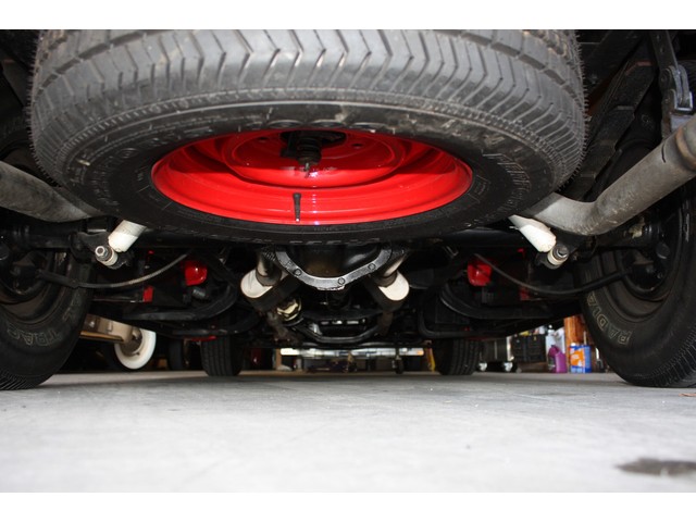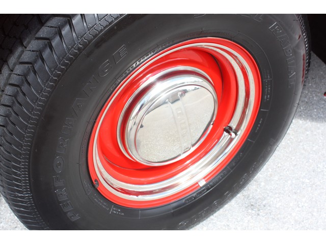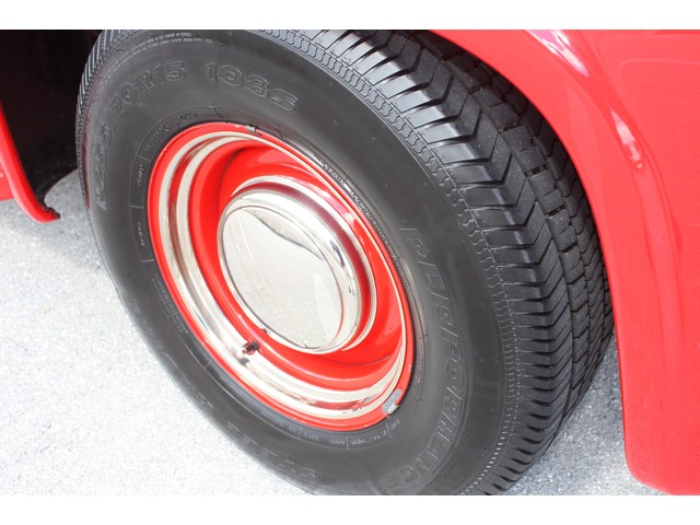 The truck rides on steel wheels that have been carefully painted in matching Porsche Guards Red before the brightly finished trim rings and FORD logo center caps were installed. All of the wheels look incredible, and they are each wrapped in brand new Performance Radial tires size P255/70R15 in back, and P225/70R16 up front. The tires are damage and issue free, and have just 124 miles on them since installed. The truck was stored on a lift, so the tires DO NOT have any flat spots or issues.