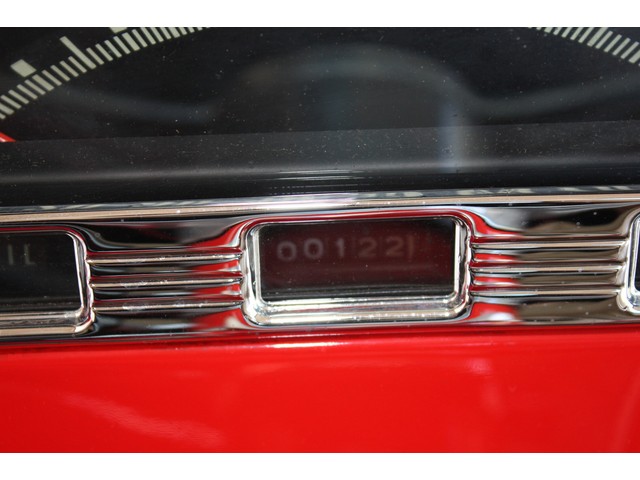 The painted dash has been fit with a new gauge insert panel that has a functional temp gauge and fuel gauge, along with working dummy lights for oil and battery. A fully functional speedometer and odometer finish it off, and appear to be accurate.
