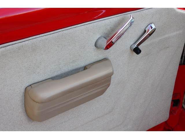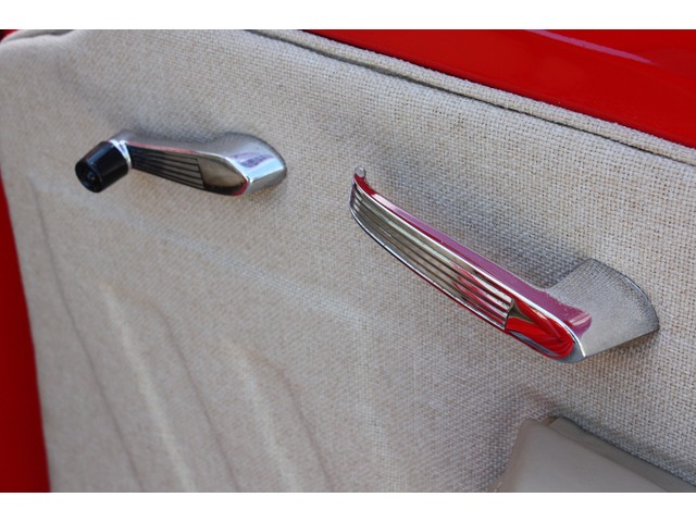 Vintage custom chrome door pulls and window rollers look great, but show light patina from originality.