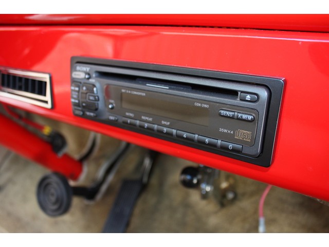 A SONY AM/FM/CD head unit with removable face plate fits cleanly in the dash, and provides god sound through the dual custom kick panel speakers.