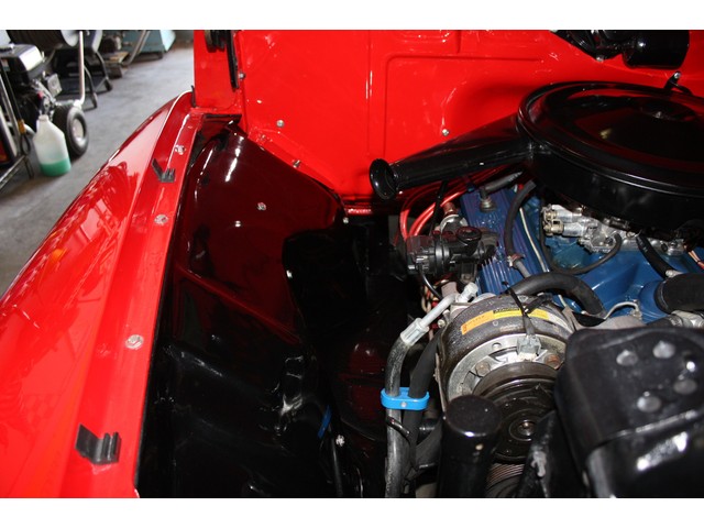 Opening the hood reveals a super clean and like-new GM Performance 350ci V8 motor with 290hp that has more than enough power to motivate this truck down the highway.