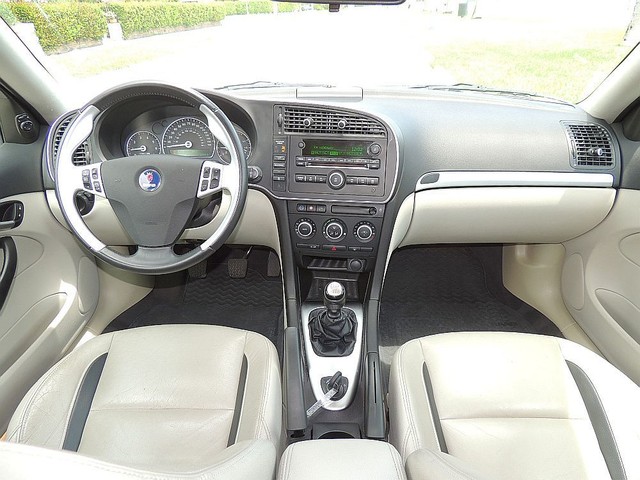 This is your chance to get a low mileage & FULLY LOADED 2007 Saab 9-3 Aero V6 luxury sport sedan!! This is a CarFax certified 2 owner Texas vehicle that has ONLY 86k well maintained, garage kept miles! The exterior is finished in a stunning Jet Black that is shiny and in great overall condition and complimented with a Parchment leather interior that shows only minimal wear. This 9-3 features a powerful 2.8L  turbocharged V6 capable of 250hp and is mated to the seamless 6-speed MANUAL transmission that truly brings this Sweedish power-plant to life!! This motor is quick on its feet but still gets a very efficient 20/26MPG and with gas prices over $4/gal, you can’t go wrong here!