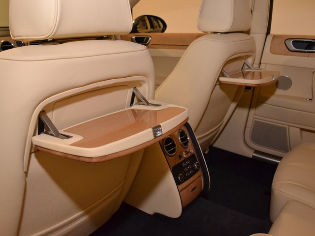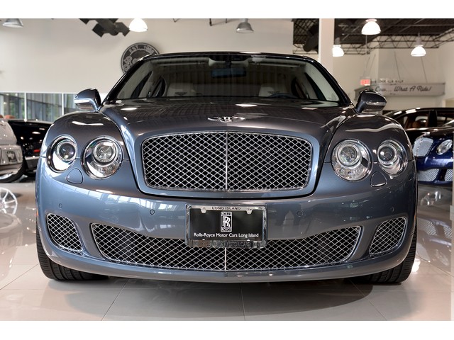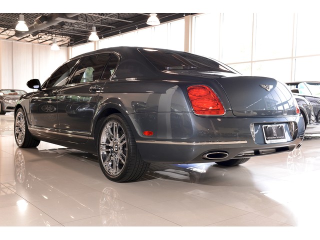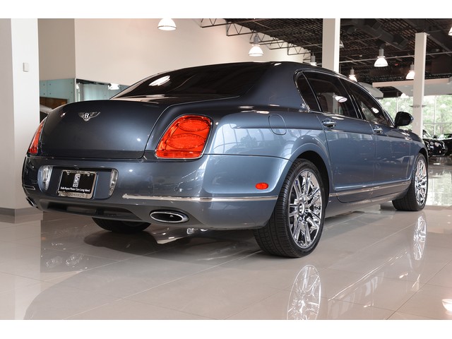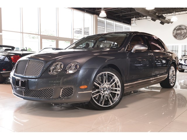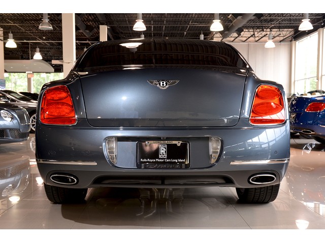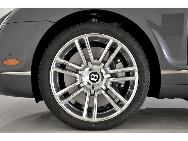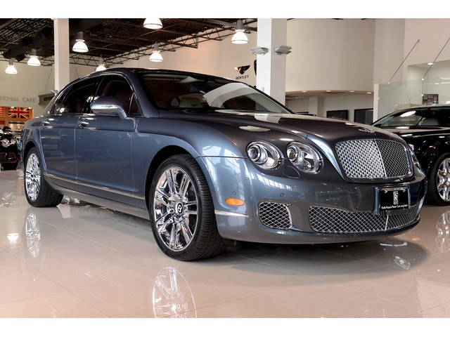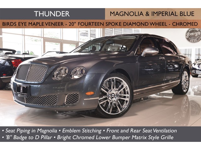 2013 Bentley Continental Flying Spur in Thunder with Magnolia hide interior, Imperial Blue secondary hide and Birds Eye Maple Veneer. Additional features include Seat Piping in Magnolia, Contrast Binding To Carpet Overmats, Emblem Stitching, 'B' Badge to D Pillar, Bright Chromed Lower Bumper Matrix Style Grille, 3-Spoke Single Tone Heated Hide Trimmed Steering Wheel With Brushed Switch Surround, Chrome Strip Inlay to Door Waistrails, Deep Pile Overmats To Front and Rear, Hide Trimmed Sports Gear Lever, Veneered Picnic Tables to Rear of Front Seats, Front and Rear Seat Ventilation (in addition to Standard Massage Seats), Rear View Camera (in Addition to Std Ultrasonic Park Distance Control Front & Rear), and 20" Fourteen Spoke Diamond Wheel - Chromed. Original MSRP $210,505