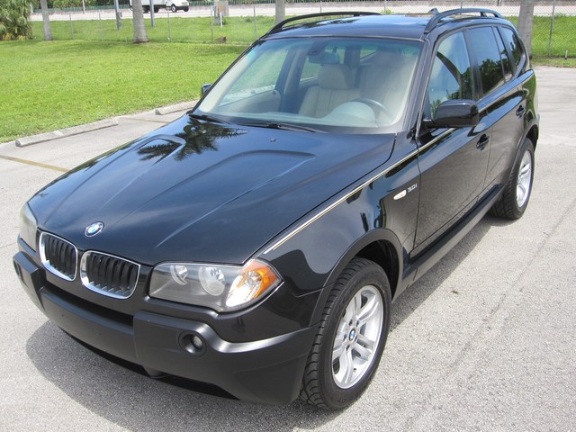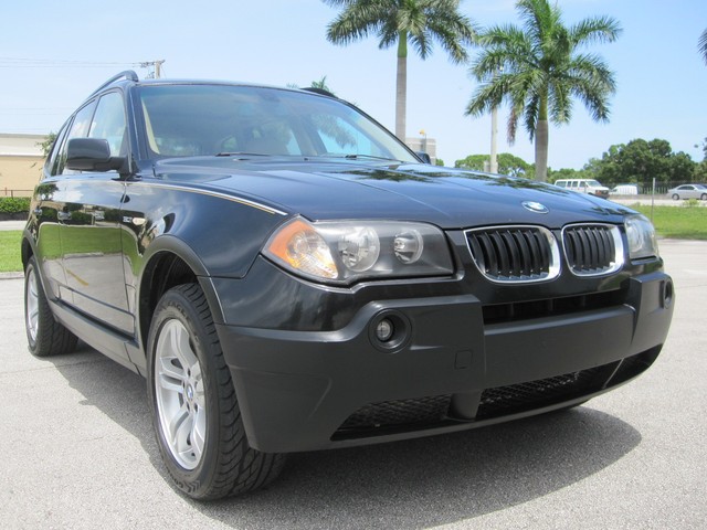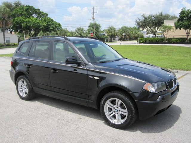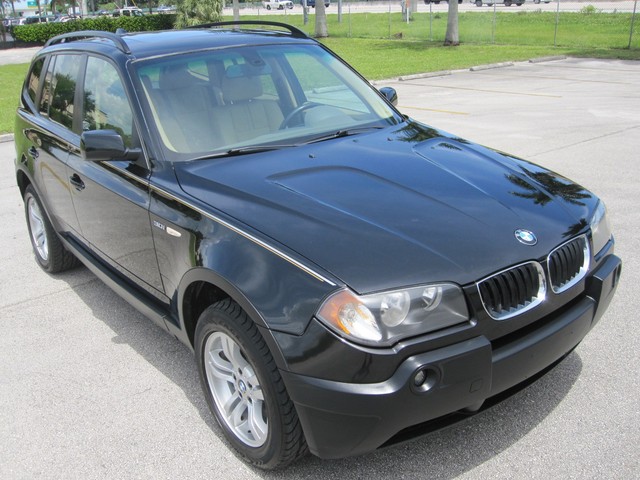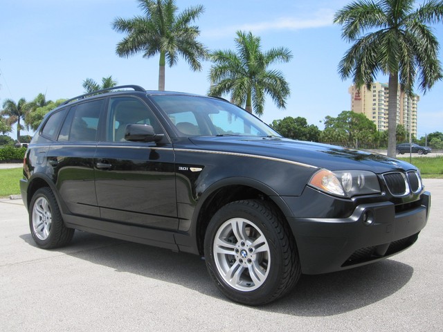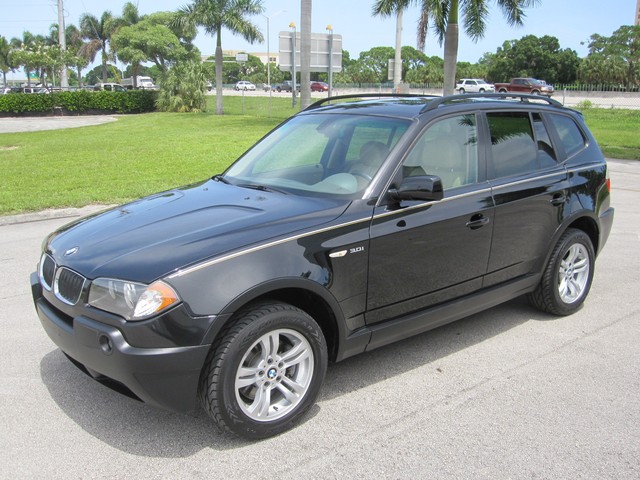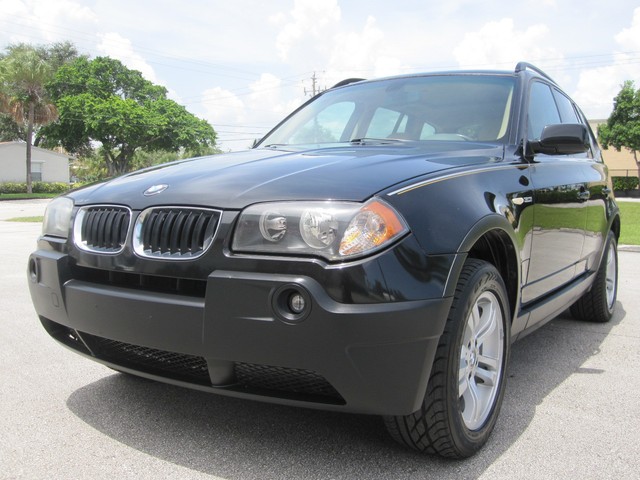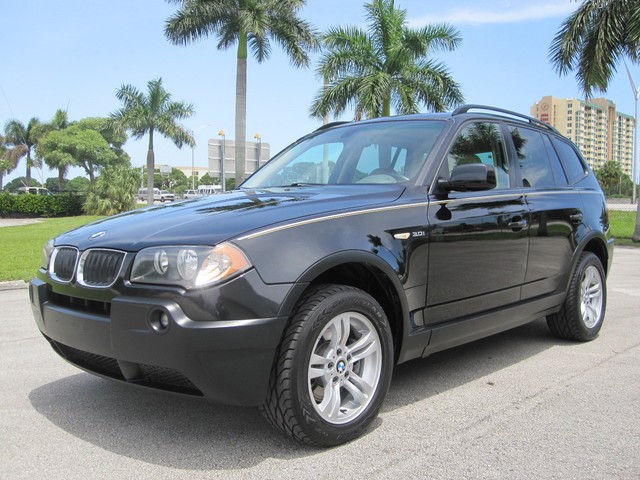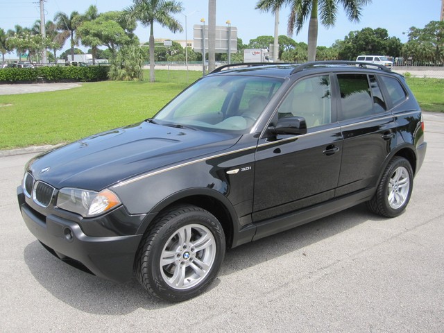 2004 BMW X3 3.0I AWD ALL WHEEL DRIVE SUV WITH SUPER LOW 97K MILES, 3.0L 6 CYL ENGINE, SIX SPEED MANUAL TRANSMISSION,  PREMIUM PACKAGE, ICE COLD AIR CONDITIONING, LEATHER INTERIOR, BLUETOOTH, POWER GLASS SUNROOF, NICE 17 INCH SPORT ALLOY WHEELS  AND MORE. Up for auction a gorgeous looking in Black Saphire metallic exterior color and Tan Leather Interior BMW X3 3.0i AWD that has truly been well kept and maintained. This vehicle's history report shows it to be a two owner vehicle! The mileage represented is the actual mileage of this vehicle. Clean smell throughout, appears to have never been smoked in. This vehicle has all of its original body parts and appears to have never been in an accident. It has a CLEAN AUTOCHECK vehicle history report. Please, email for a Free report! Other then a few minor paint chips (professionaly touched up) the exterior is flawless. We looked all over and found no door dings, obviously this vehicle is one of those vehicles you always see parked deep in the parking lots. To look this good, it is obvious that this beauty has been garaged. This vehicle's transmission shifts out nice and smooth from gear to gear. The engine is mechanically sound and can be driven anywhere with confidence. The elctrical and optional equipment on this vehicle has been checked to insure that it is all in working condition. The beautiful Tan leather interior is clean and polished looking, showing some minor wear. The tires are in a good shape,  please, see the pictures. Plan a trip or vacation to Florida and we will pick you up at the Ft Lauderdale airport only 15 minutes away.  Our staff is ready to answer all of your questions, please call us at 561-317-1916.  Thank you for reading and Good Luck!