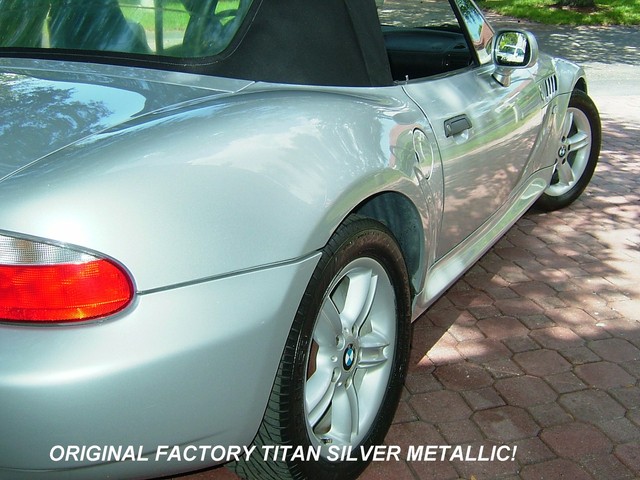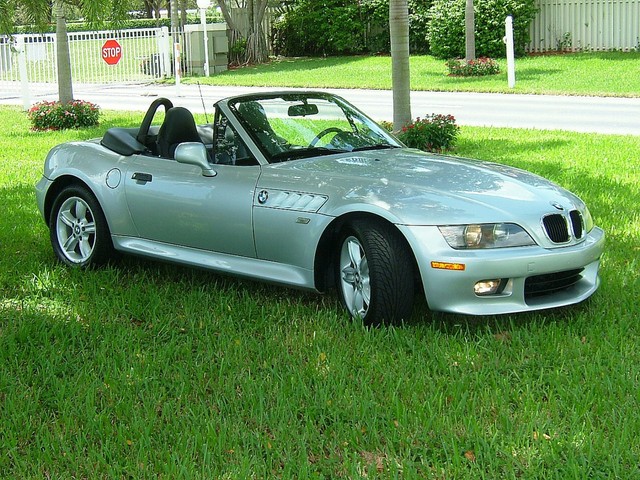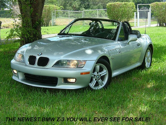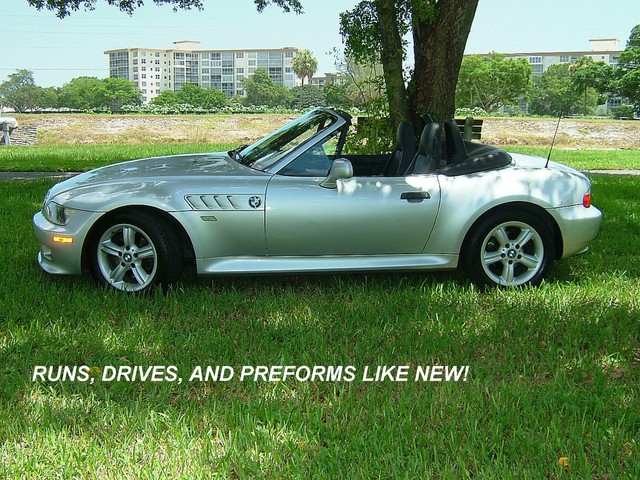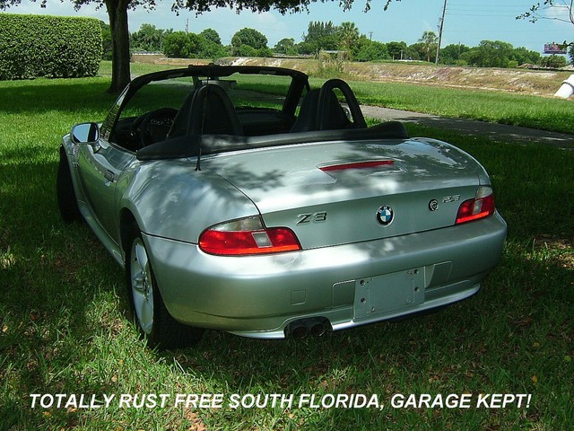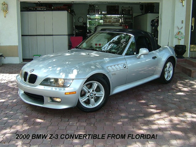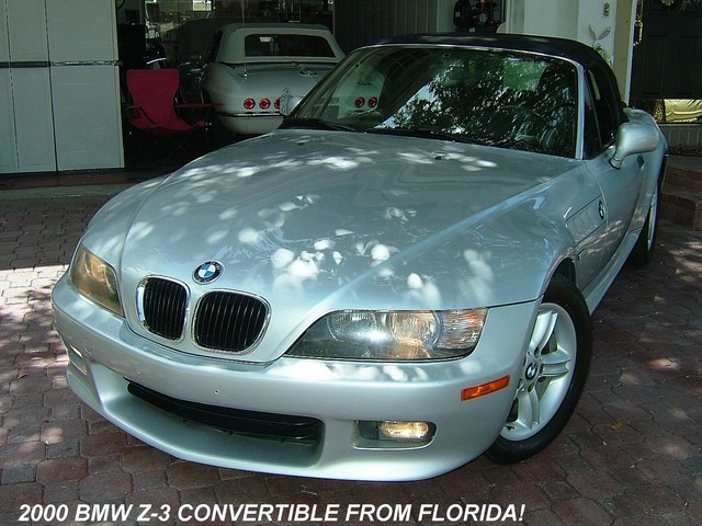 THIS 2000 BMW Z-3 CONVERTIBLE IS BRILLANT SILVER WITH A BLACK LEATHER INTERIOR AND A BLACK CANVAS CONVERTIBLE TOP! IT IS A ONE OWNER (LEASE/PURCHASE) GARAGE KEPT, TOTALLY RUST FREE SOUTH FLORIDA AUTOMOBILE! IT RUNS, DRIVES, AND PREFORMS LIKE NEW IN EVERYWAY! ALL THE OPTIONS INCLDING A 4 SPEED AUTOMATIC TRANSMISSION, POWER EVERYTHING, CD PLAYER, ICE COLD FACTORY AIR CONDITIONG, HEATED SEATS, POWER TOP, POWER WINDOWS, LOCKS, CRUSIE CONTROL,  ALLOY WHEELS, ETC! THIS BMW WAS GARAGE KEPT AND ALWAYS COVERED WHEN NOT IN USE! THE FACTORY ALLOY BMW WHEELS ARE PERFECT WITH NO CURB SCRAPES, PITTING, OR RUST. THE BLACK LEATHER INTERIOR IS AS NEW AS THEY COULD BE WITH NO WEAR, RIPS, OR STAINS. THIS WAS A NON-SMOKING VEHICLE SINCE NEW! THE BLACK CANVAS CONVERTIBLE TOP IS PERFECT AND WORKS LIKE NEW! FAST, AND FUN TO DRIVE! THE ONLY THINGS WE COULD FIND AFTER A VERY CLOSE INSPECTION FROM KEEPING IT BEING PERFECT IS THE PLASTIC CONVERTIBLE REAR WINDOW IS SLIGHTLY CLOUDED AND NEEDS TO RUBBED OUT, TWO VERY TINY DOOR DINGS ON THE PASSENGER DOOR (THESE CAN BE REMOVED BY PAINTLESS DENT REPAIR) AND A 1/4 INCH GAP IN THE DRIVERS POWER SEAT. YOU WOULD HAVE A VERY HARD TIME FINDING A NEWER Z-3 ANYWHERE! AND BEST OF ALL IT IS A TOTALLY RUST FREE SOUTH FLORIDA AUTOMOBILE! ORIGINAL EVERYTHING INCLUDING A EAUTIFUL FACTORY FINISH WITH NO DENTS, SCRATCHES, OR CHIPS! AVERAGE RETAIL IS $9350.00 AND ABOVE AVERAGE IS $13,200.00. YOU CAN BUY THIS BMW RIGHT AS THE RESERVE IS LOW AND PRICED TO SELL!
