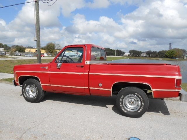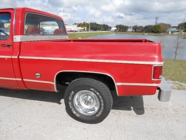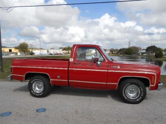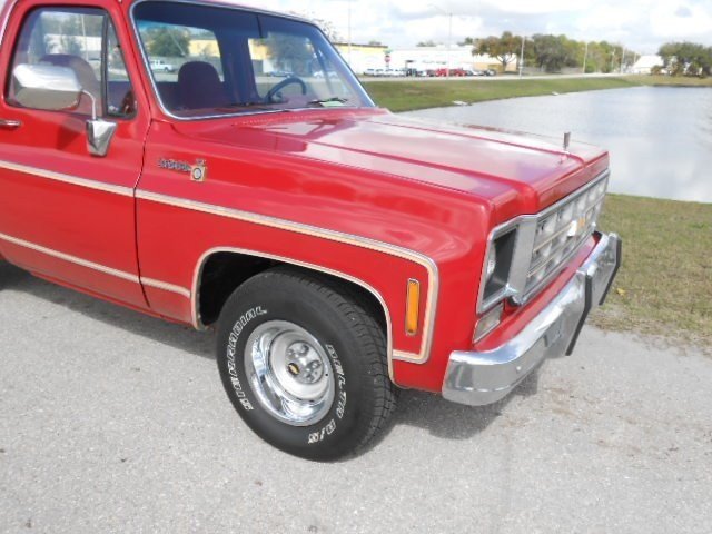 Super straight 1977 Chevrolet Big Block Shortbox Scottsdale C-10 from the great state of TN. 454 engine is strong as an ox and sounds great. Cold A/C, easy to drive with power steering an power brakes. No signs of rust or repair. Excellent straight, original sheet metal, nice shiny bright red paint job with tan accents in trim. Complete interior just refurbished and in excellent shape. Clean engine compartment and under-side. Here is a list of facts, recent upgrades and restoration. Factory Big Block Truck New 454 Big Block Crate Engine 400 Turbo Transmission 12 Bolt Rearend Completly took apart and painted few years ago All New Chrome and Trim when Painted All New Rubbers and Felts Power Steering Power Brakes New Dash Pad Nice And Very Clean Interior Straight Body & Nice Paint NEW Tires New Rallys w/ New Centers & Beauty Bands New Radiator New Dual Exhaust w/ Flowmasters Vintage A/C Factory Tach Tilt Wheel Solid Truck Runs & Drives Great We are in Sarasota FL just below Tampa. We ship, we finance, we trade. www.americanclassiccarsales.com Call 941-928-2339