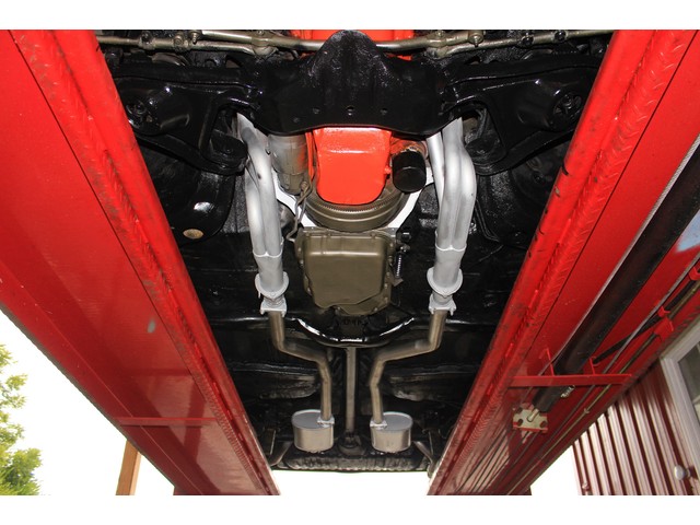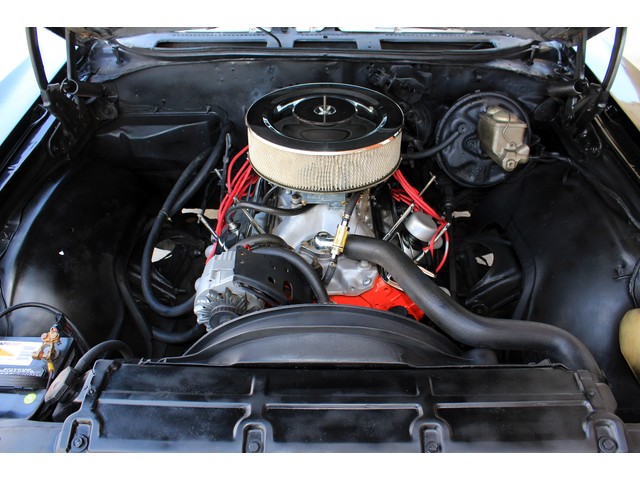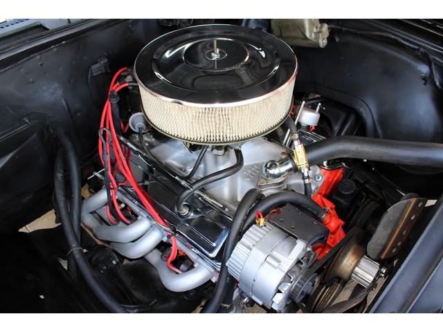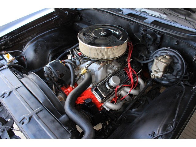 Finally, we will take a look at the heartbeat of the Chevy. Under the hood it has a 350 V8 that is mated to an Automatic Trans and a 12 Bolt Rear End. It has the correct boxed control arms. The engine is dressed with chrome valve covers and breather. It has Headers with stock dual exhaust. Also it has the factory power steering and it has power front disc brakes. When you look at the floors and trunk they look good with no signs of damage or rot.
