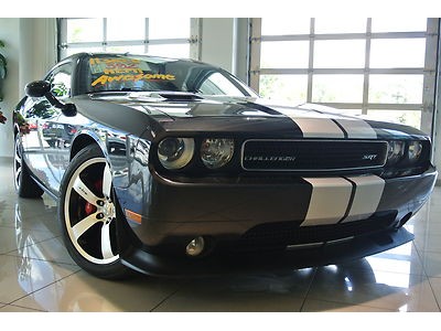 SRT HEMI 6.4L V8 MDS, GPS Navigation, 4-Wheel Disc Brakes, 6 Speakers, 6.5'' Touch Screen Display, ABS brakes, Air Conditioning, Alloy wheels, AM/FM radio: SIRIUS, kicker SUb woofer, Anti-whiplash front head restraints, Auto-dimming Rear-View mirror, Automatic temperature control, Brake assist, Bumpers: body-color, CD player, Compass, Delay-off headlights, Driver door bin, Driver vanity mirror, Dual front impact airbags, Dual front side impact airbags, DVD-Audio, Electronic Stability Control, Four wheel independent suspension, Front anti-roll bar, Front Bucket Seats, Front Center Armrest, Front fog lights, Front reading lights, Fully automatic headlights, Garage door transmitter: HomeLink, Heated door mirrors, Heated front seats, High-Intensity Discharge Headlights, Illuminated entry, Leather Shift Knob, Low tire pressure warning, MP3 decoder, Outside temperature display, Overhead airbag, Overhead console, Panic alarm, Passenger door bin, Passenger vanity mirror, Power door mirrors, Power driver seat, Power steering, Power windows, Premium Leather Trimmed Bucket Seats, Radio data system, Radio: Media Center 430 CD/DVD/MP3/HDD, Rear anti-roll bar, Rear seat center armrest, Rear window defroster, Remote keyless entry, Security system, SIRIUS Satellite Radio, Speed control, Speed-sensing steering, Split folding rear seat, Spoiler, Steering wheel mounted audio controls, Tachometer, Telescoping steering wheel, Tilt steering wheel, Traction control, Trip computer, and Variably intermittent wipers. Lots of get-up-and-go for a great price in this so-much-fun to drive Challenger.
