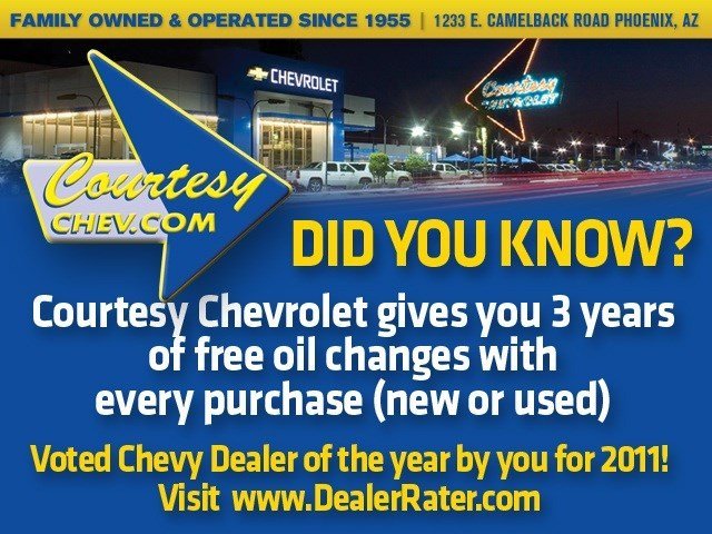 Courtesy Chevrolet is a Family owned and operated dealership since 1955.  We are one of the largest dealerships in Phoenix, Arizona and offer all of our valued customers a no hassle, no pressure sales expierence.  By purchasing a vehicle through Ebay you save yourself time and money by receiving the best up front pricing available.  We have one of the largest new and used car inventories in the country and have access to any new Chevrolet Product.