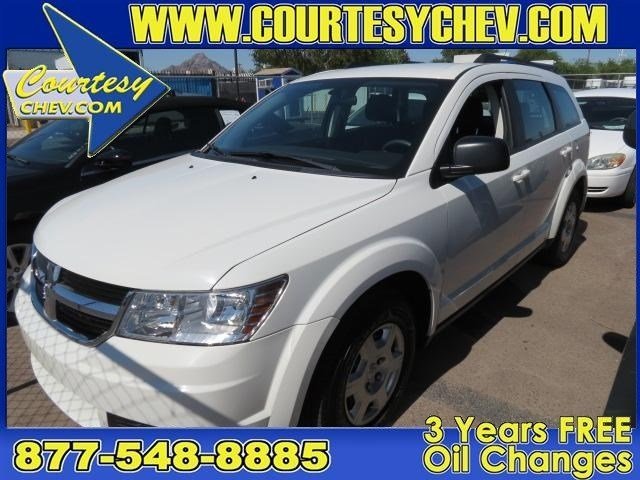 Gorgeous 2010 Dodge Journey is the high reliability SUV you've been hunting for. Consumer Guide named the Journey a 2010 Recommended Midsize SUV! It is nicely equipped with features such as Journey SE, 4D Sport Utility, 2.4L 4-Cylinder DOHC 16V Dual VVT, and White. Constructed like Fort-Knox-on-wheels, but priced well enough to still leave you plenty of gold. Call us at 888-267-5511 or Stop by http://www.Courtesychev.com to see more photos today!!! Courtesy Chevrolet is a family owned and operated dealer serving Phoenix since 1955. You're gonna love your experience here. To ensures that our used vehicles are in top shape, have been through a reconditioning process, and are presented to you via advertising, photo's and marketing, all our used vehicles are subject to a $995 dealer prep fee.