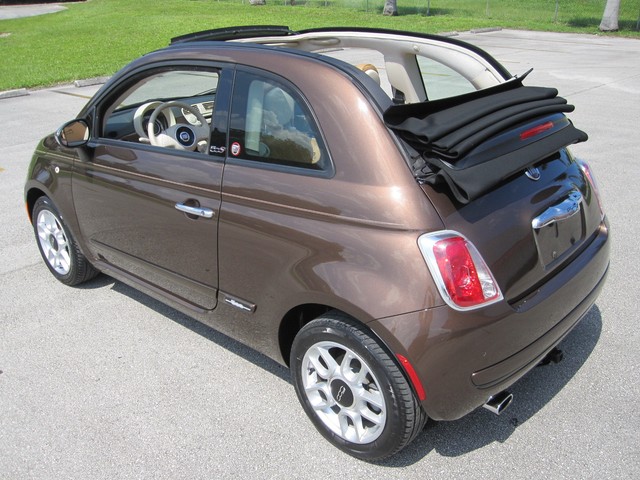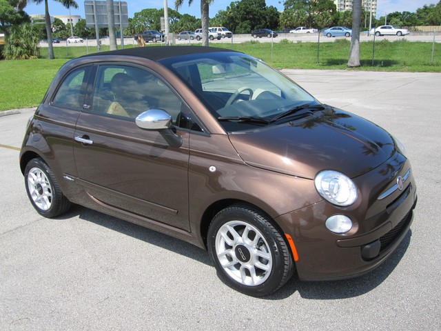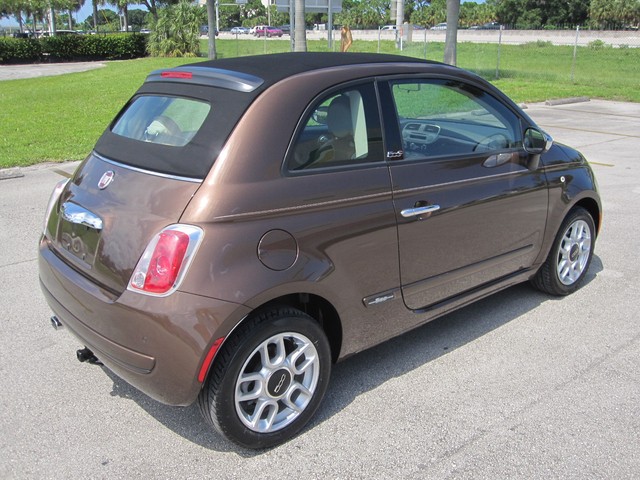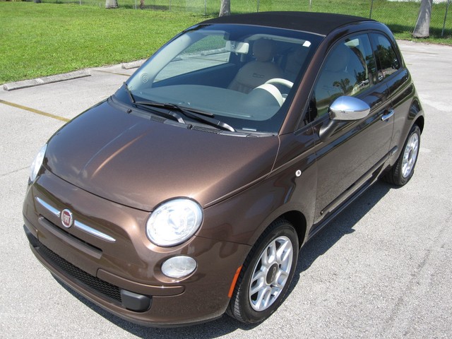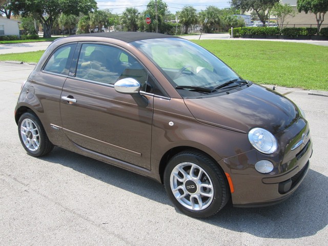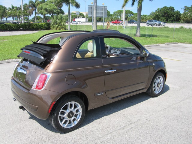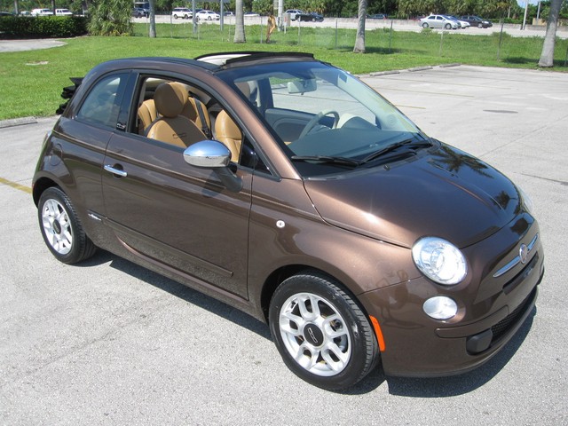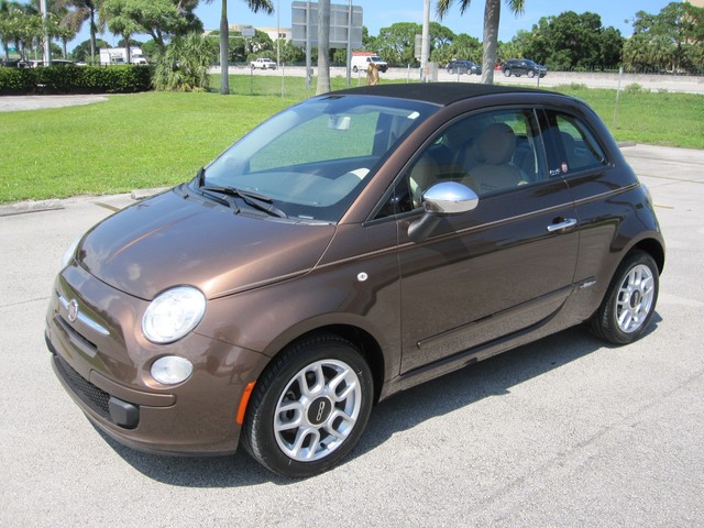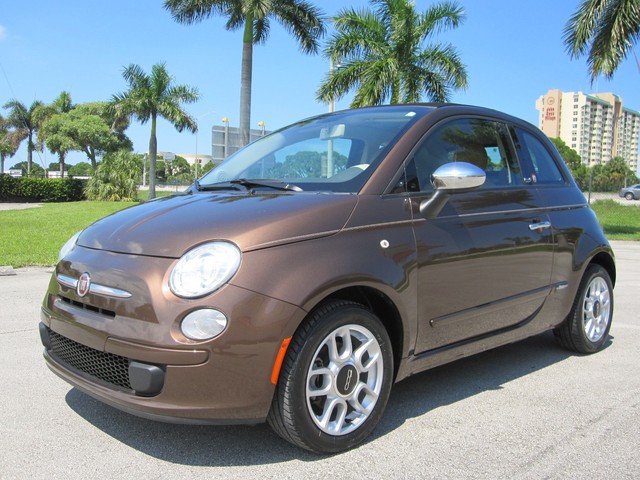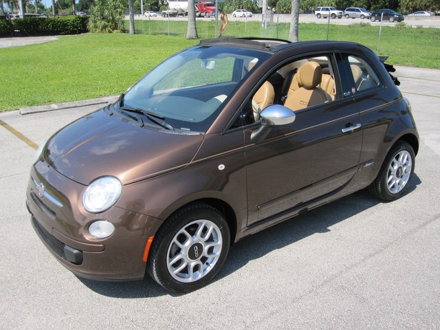 2012 FIAT 500C CONVERTIBLE WITH SUPER EXTRA LOW 22K FLORIDA MILES, 1.4L 4 CYL ENGINE, PREMIUM PACKAGE, FIVE SPEED MANUAL TRANSMISSION, SUPER NICE 15 INCH SPORT ALLOY WHEELS, ICE COLD AIR CONDITIONING, LEATHER INTERIOR, IN DASH CD DISC PLAYER, REAR PARKING SENSORS, BLUETOOTH AND MUCH MORE. Up for auction an absolutely gorgeous and attractive looking in Espresso Brown metallic exterior color and Black convertible soft top Fiat 500C that has truly been well kept and maintained. This vehicle's history report shows it to be a One Florida owners vehicle! The mileage represented is the actual mileage of this vehicle. Clean smell throughout, appears to have never been smoked in. This vehicle has all of its original body parts and appears to have never been in an accident. It has a CLEAN AUTOCHECK history report! Please email for a Free  report! We looked all over and found no door dings, obviously this vehicle is one of those vehicles you always see parked deep in the parking lots. To look this good, it is obvious that this beauty has been garaged. This vehicle's transmission shifts out nice and smooth from gear to gear. The engine is mechanically sound and can be driven anywhere with confidence. The elctrical and optional equipment on this vehicle has been checked to insure that it is all in working condition. This cream puff is a top-flight used vehicle, with no known defects. No warning lights on the dash and No oil leaks makes it a Great vehicle! The beautyful Camel  leather interior is clean and polished looking. The convertible soft top is in an excellent shape! Plan a trip or vacation to Florida and we will pick you up at the Ft Lauderdale airport only 15 minutes away. Please call us for more information at 561-317-1916. Thank you for reading and Good Luck!