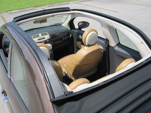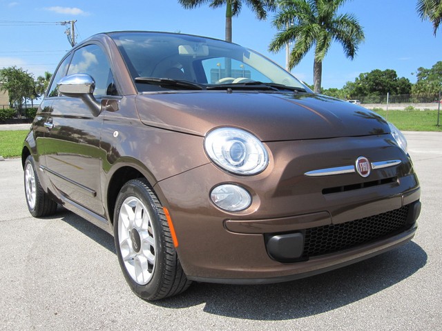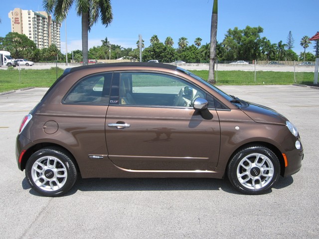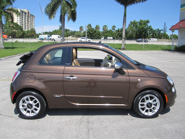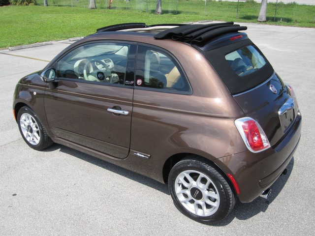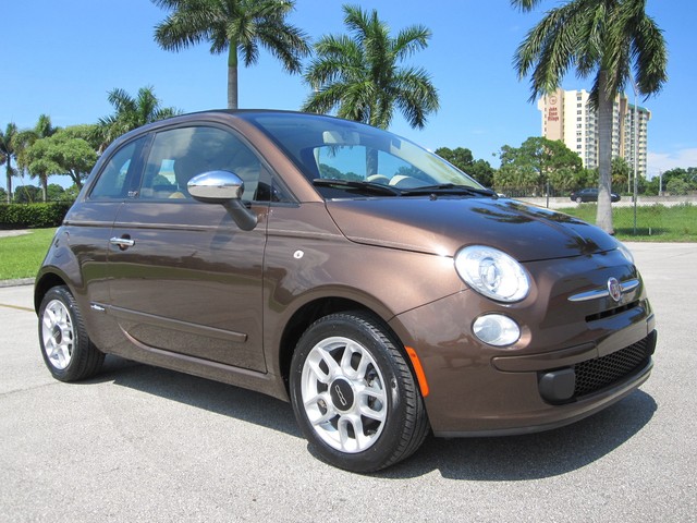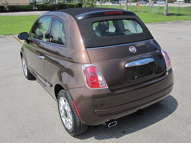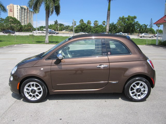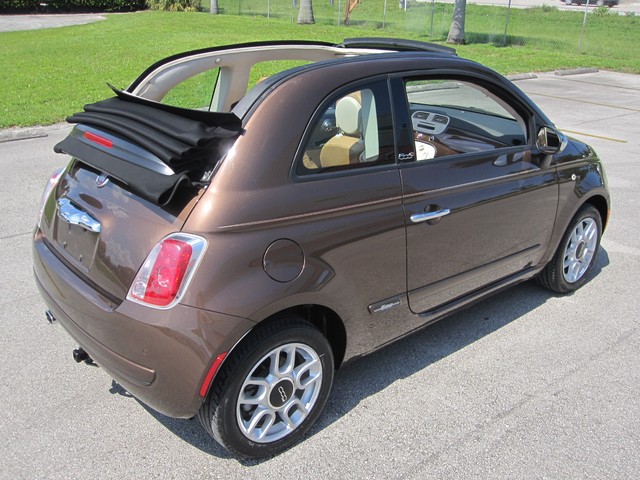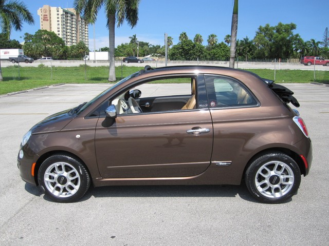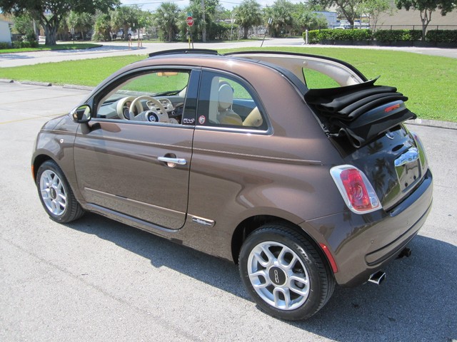 2012 FIAT 500C CONVERTIBLE WITH SUPER EXTRA LOW 22K FLORIDA MILES, 1.4L 4 CYL ENGINE, PREMIUM PACKAGE, FIVE SPEED MANUAL TRANSMISSION, SUPER NICE 15 INCH SPORT ALLOY WHEELS, ICE COLD AIR CONDITIONING, LEATHER INTERIOR, IN DASH CD DISC PLAYER, REAR PARKING SENSORS, BLUETOOTH AND MUCH MORE. Up for auction an absolutely gorgeous and attractive looking in Espresso Brown metallic exterior color and Black convertible soft top Fiat 500C that has truly been well kept and maintained. This vehicle's history report shows it to be a One Florida owners vehicle! The mileage represented is the actual mileage of this vehicle. Clean smell throughout, appears to have never been smoked in. This vehicle has all of its original body parts and appears to have never been in an accident. It has a CLEAN AUTOCHECK history report! Please email for a Free  report! We looked all over and found no door dings, obviously this vehicle is one of those vehicles you always see parked deep in the parking lots. To look this good, it is obvious that this beauty has been garaged. This vehicle's transmission shifts out nice and smooth from gear to gear. The engine is mechanically sound and can be driven anywhere with confidence. The elctrical and optional equipment on this vehicle has been checked to insure that it is all in working condition. This cream puff is a top-flight used vehicle, with no known defects. No warning lights on the dash and No oil leaks makes it a Great vehicle! The beautyful Camel  leather interior is clean and polished looking. The convertible soft top is in an excellent shape! Plan a trip or vacation to Florida and we will pick you up at the Ft Lauderdale airport only 15 minutes away. Please call us for more information at 561-317-1916. Thank you for reading and Good Luck!
