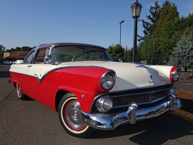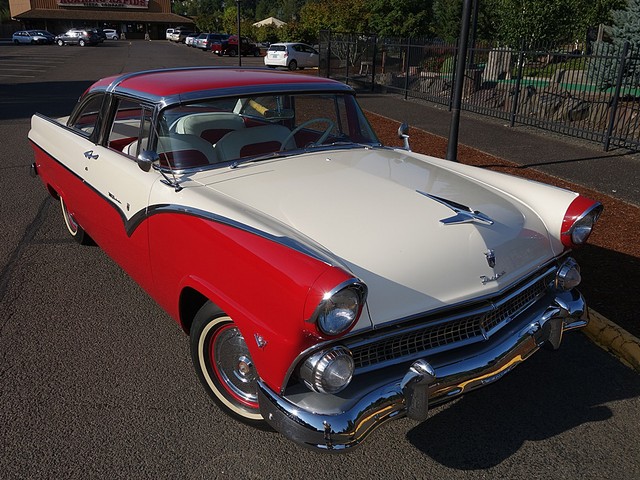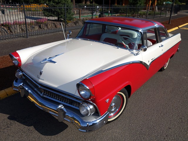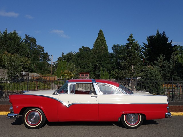 Featured here on eBay Motors is our gorgeous 1955 Ford Fairlane Crown Victoria. Absolutely beautiful throughout with recent restoration. Rust free, lifelong Northwest car! Arrow straight body finished in a timeless color combination of Red and White with matching interior. Show quality paint, stainless, and chrome!