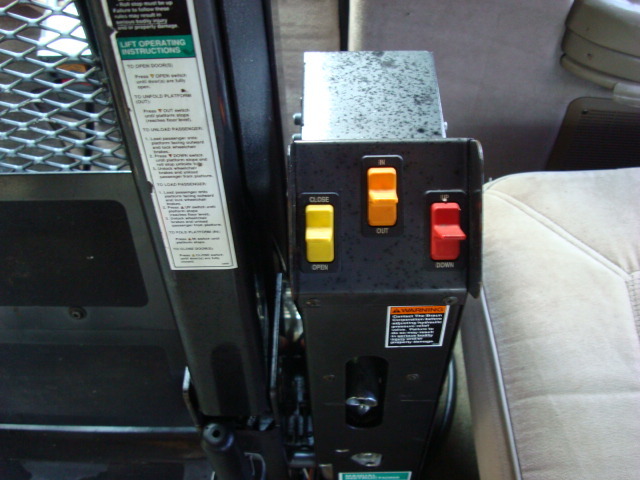 The lift is a Braun L950SE294248 model. It can lift up to 370 pounds. There are three operating stations to control the lift. The is a remote control to use outside the van, handbar controls for the passenger and controls on the lift inside the van. The lift functions properly as shown in the photos.