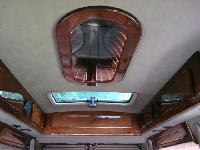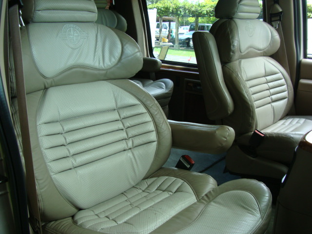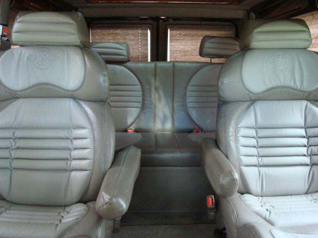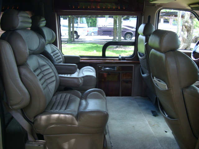 It is equipped with ice cold dual air conditioning, chrome wheels, running boards, towing package, fog lights, leather upholstery, power drivers seat, power folding 3rd row seat/bed, power windows, power door locks, power mirrors, quad seating, Sharp flatscreen TV w/ remote, VCR, AM/FM/CD/cassette, woodgrain interior, courtesy mood lighting, window blinds, rear pop-up sunroof, dual airbags, cruise control, ABS and many other luxury features. Don’t miss your chance to own it today!