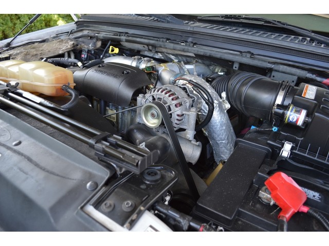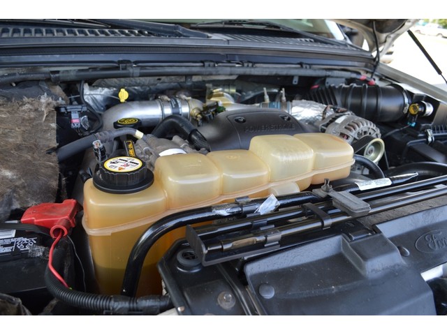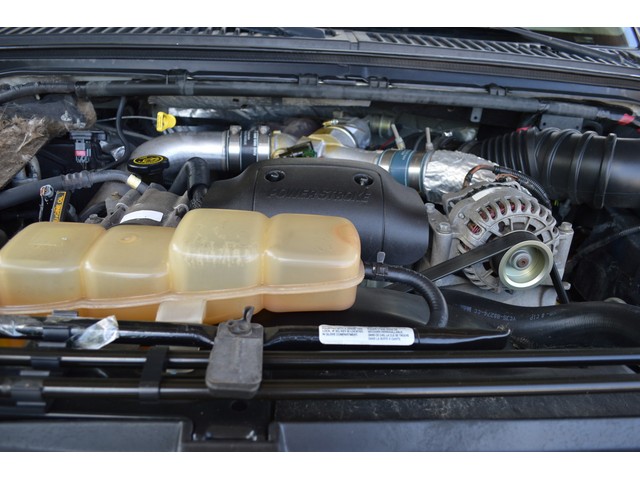 Powerstroke Diesel V8 and automatic transmission. It is equipped with dual power leather  seats, power trailer mirrors, power windows, power locks, tilt, cruise, am/fm/6cd player, bedliner, and receiver hitch. Also included are the owner's manuals and one keyless remote.