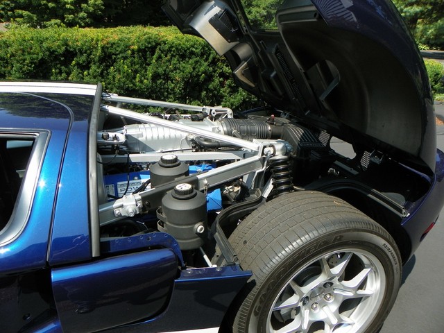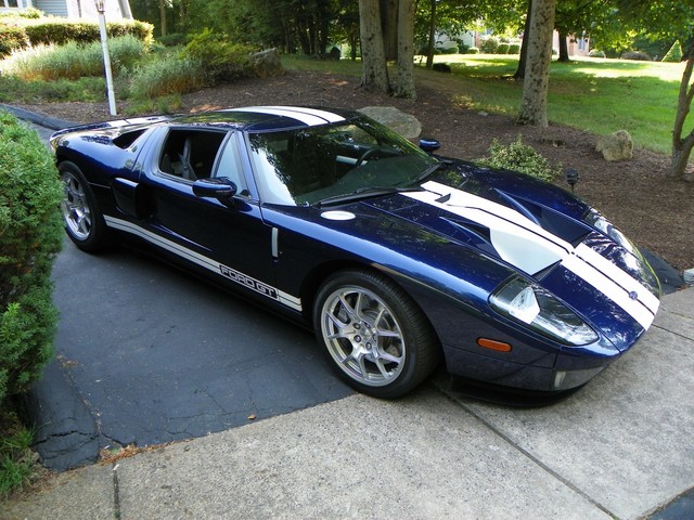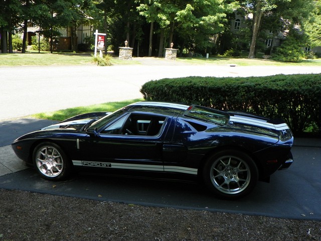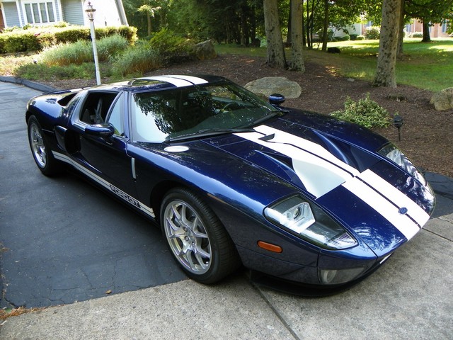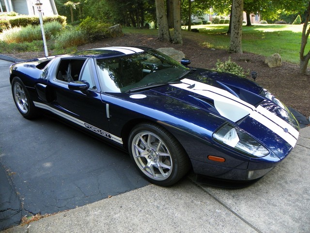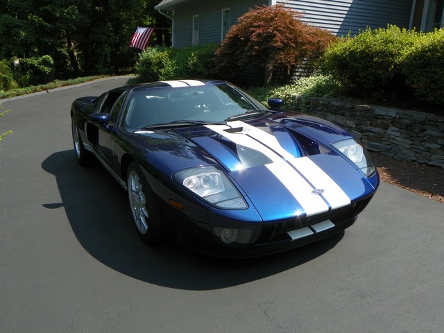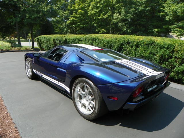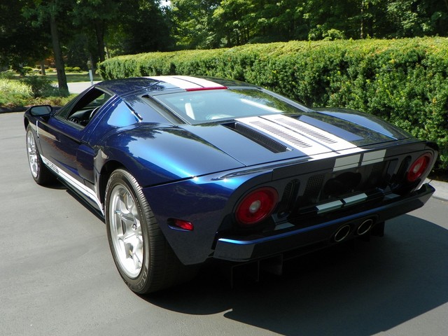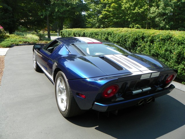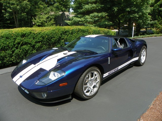 IM CLASSICS IS PROUD TO PRESENT THIS BEAUTIFUL AND RARE 2006 FORD GT. FINISHED IN RARE MIDNIGHT BLUE (ONLY 190 PRODUCED IN 2006) WITH WHITE STRIPES AND BLACK TRIM THIS COLOR COMBINATION IS ONE OF THE RAREST AND MOST SOFT AFTER. THIS GT INCLUDES ALL 4 AVAILABLE OPTIONS. THEY ARE: BBS LIGHT WEIGHT FORGED WHEELS, A MCINTOSH AUDIO SYSTEM, PAINTED BRAKE CALIPERS, AND RACING STRIPES.LIKE THE ORIGINAL, THE MODERN GT IS NOT BASED ON ANOTHER PRODUCTION CAR. IT USES AN ALUMINUM BODY BOLTED TO AN ALUMINUM SPACE FRAME AND IS POWERED BY AN ALL ALUMINUM ENGINE, A MID MOUNTED 5.4L V-8 THAT DRIVES THE REAR WHEELS THROUGH A 6 SPEED MANUAL TRANSMISSION.. THE ENGINE'S OUTPUT OF 550 HP AND 500 LB.-FT. OF TORQUE IS SIMILAR TO THAT OF THE 7.0L V-8 THAT POWERED THE GT40 TO VICTORY AT THE 24 HOURS OF LEMANS IN 1966 and 1967. A RACING SUSPENSION WITH COIL-OVER SHOCK SPRINGS, 19-INCH BBS CAST ALUMINUM WHEELS, AND GOODYEAR F1 TIRES HOLD THE GT TO THE GROUND, WHILE ANTI-LOCK BRAKES WITH FOUR-PISTON BREMBO BRAKES BRING IT TO A STOP.WHERE THE GT PARTS FROM ITS RACING PREDECESSOR IS ITS STANDARD LEVEL OF EQUIPMENT. AVAILABLE IN A SINGLE TRIM LEVEL, THE GT COMES WITH AMENITIES SUCH AS CARBON-FIBER BUCKET SEATS WITH LEATHER SEATING SURFACES, POWER WINDOWS, MIRRORS AND LOCKS, REMOTE KEYLESS ENTRY, AIR CONDITIONING, ANTI-THEFT SYSTEM, AND A CD PLAYER. THIS CONTEMPORARY COLLECTIBLE GT AS MENTIONED EARLIER IS EQUIPPED WITH ALL 4 OF THE 4 AVAILABLE OPTIONS. INCLUDED WITH THE GT IS: 2 SETS OF KEYS WITH FOBS, THE CAR COVER, THE BATTERY TENDER, AND THE OWNERS MANUALS.