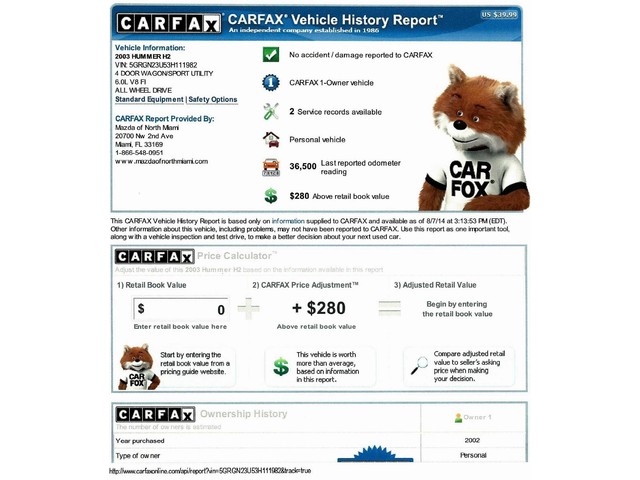 2003 H2 4X4 WOW ONLY 50K MILES CARFAX CERTIFIED ONE OWNER SHRPEST ANY WHERE