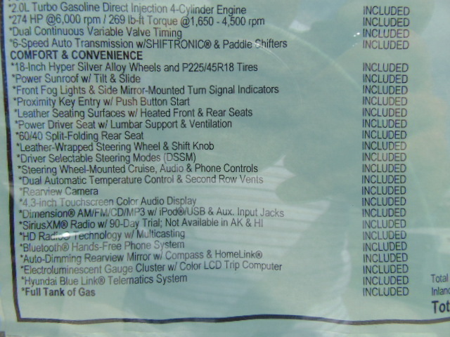 • Engine: 4 Cylinder, 2.0 GDI-T L