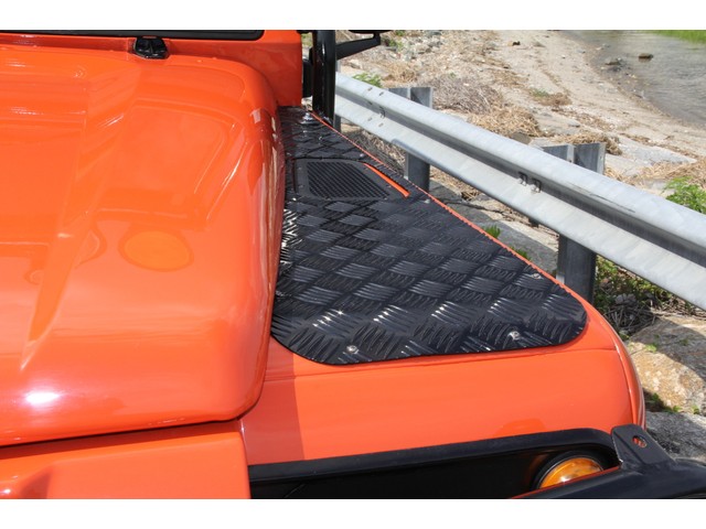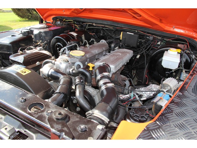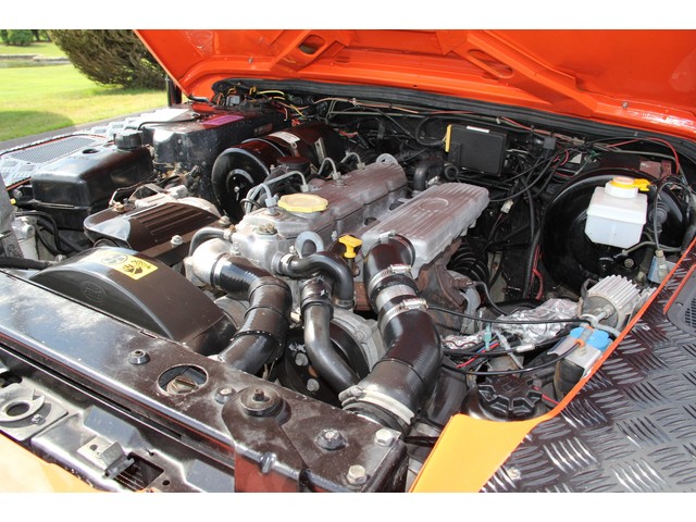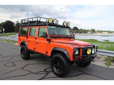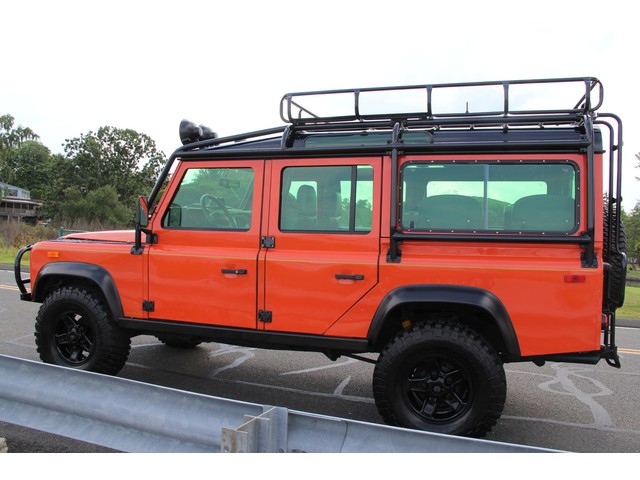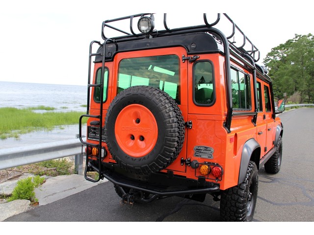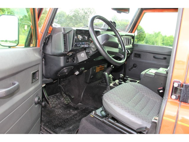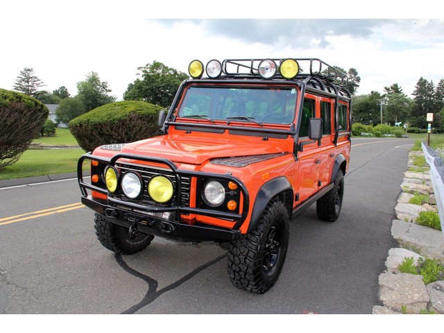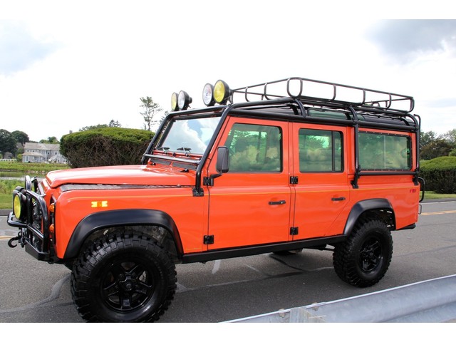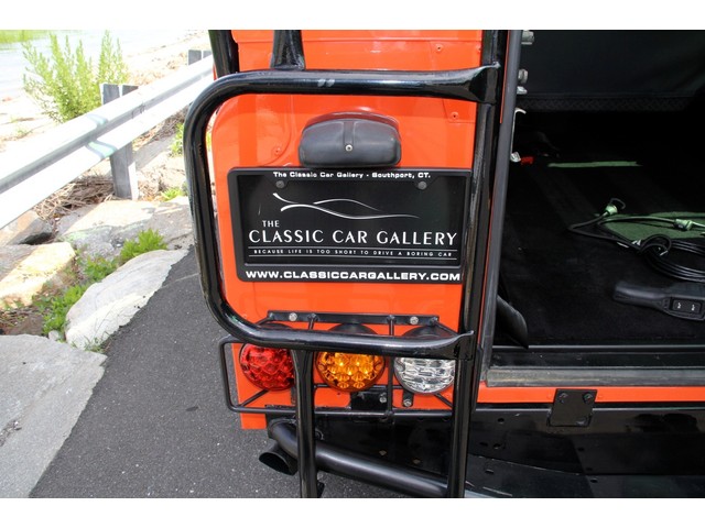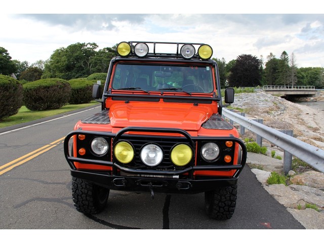 The Classic Car Gallery is proud to present this 1993 Land Rover North American Series (NAS) Defender 110. This truck has been extensively modified in a G4 Challenge Off-Road style. “ORANGE CRUSH” was completely disassembled and a frame off, glass-out respray in G4 Edition TANGIERS ORANGE was completed. All doorjambs, window frames and engine bay were painted. The truck was re-engineered to be extremely capable whether on the trail, the beach, or trekking in through the woods. A Land Rover 300Tdi turbocharged diesel engine was installed in January of 2000. She can be run on Diesel, Bio-diesel or Veggie oil.