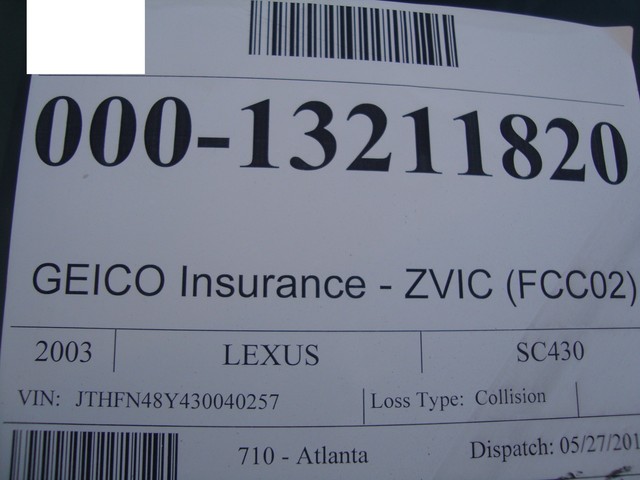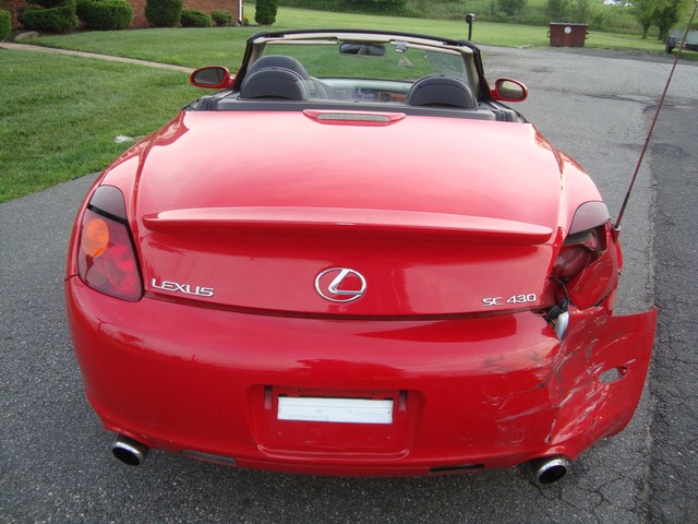 As seen in the pictures down below this nice looking 2003 Lexus SC430 Power Convertible has mainly sustained light right rear end damage. This vehicle was directly purchased from insurance auctions for resale in the condition you see it on the pics. No middle man involved. We have the salvage certificate of title (no-liens) at hand and ready to transfer to the new owner. Such vehicles can be legally returned back to the roads after repairs and your state motor vehicles inspection. Damaged areas are clearly shown in the pictures below. Looks like it was a low hit to the right rear corner. Rear bumper rebar is in tact and convertible top components are undamaged. All airbags are good. All glass good. No suspension or major mechanical damage observed. The great news is that the car starts, engine runs great, goes into gear and we are able to drive it around within our lot. Other areas of the exterior is as seen in the pictures down below. Interior is in good condition as seen in the pictures down below. Comes equipped with many options: Factory touchscreen navigation (missing cd, get it here on ebay easily) sport leather seats, sport steering, sport alloys, heated seats, dual power seats, exquisite wood trim interior, and more. Power convertible top opens/closes with the push of a button. There is no damage to convertible top components. Rear trunk door has no major damage as seen in the pictures. Overall great condition indicates that it was a well maintained vehicle. It has a timing belt change sticker under the hood dated 3/1/13 at around 96k miles. See below photos down below for overall condition and please ask questions before making a purchase and not after.