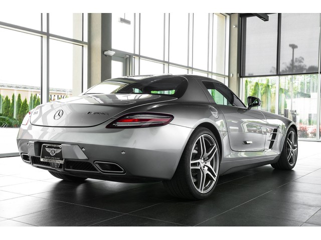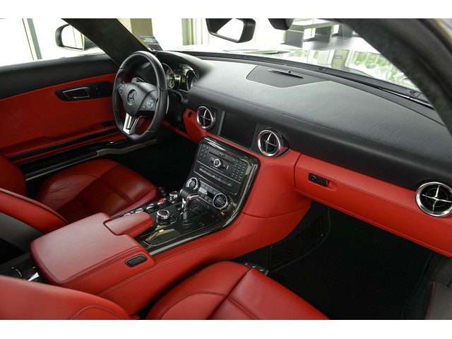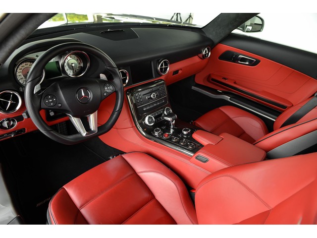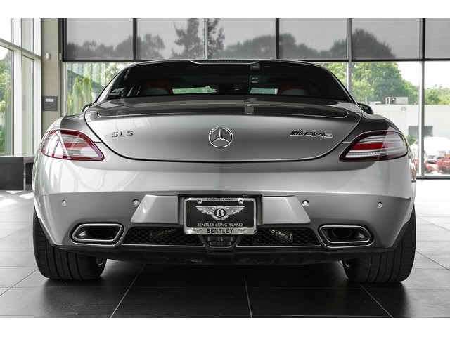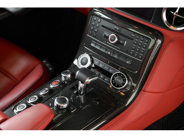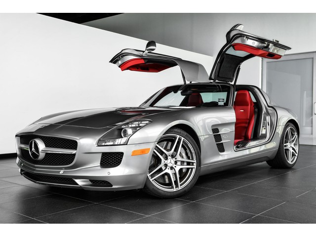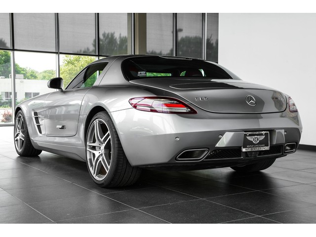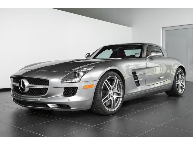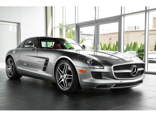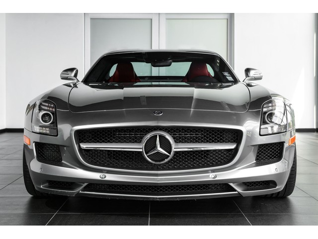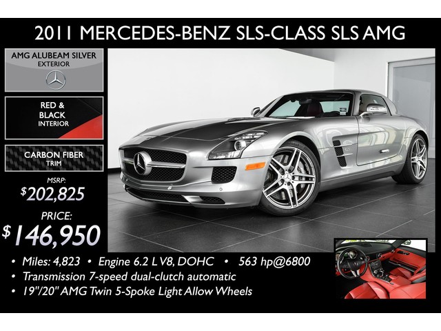 2011 Mercedes-Benz SLS in AMG ALUBEAM Silver with Classic Red designo Exclusive Leather interior. Additional features include Carbon Fiber Trim and 19"/20" AMG Twin 5-Spoke Light Allow Wheels. Original MSRP $202,825