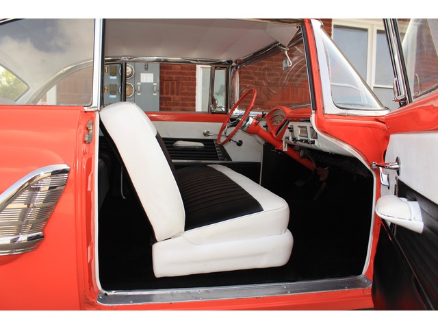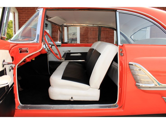 Next, we will take a look at the interior of the Montclair. It all looks like new with the seats being the correct bench. They are covered in what looks to be the right style black and white. The door panels, carpet, and headliner all looks good. When you look at the dash it all looks correct with nice trim that is painted to match the outside color.