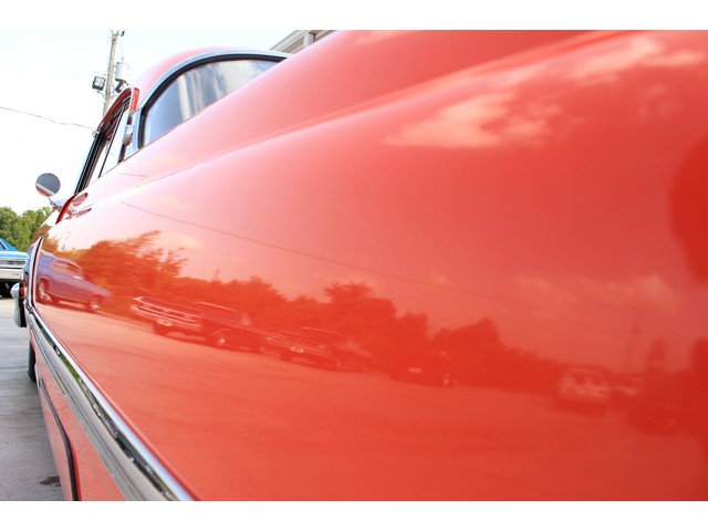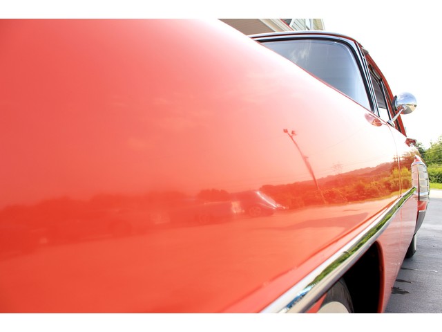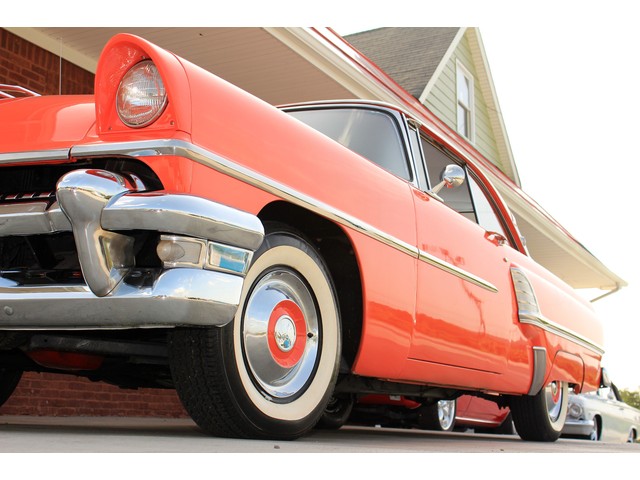 We will start off with the exterior of the ’55. When you walk around this ride you will see a solid and straight body with good lines. All the stainless has good fit and it all looks good. The window trim looks very good as well as all the glass. The bumpers and other chrome looks like new and all fits well. As best we can tell the paint on this Merc is the correct Persimmon. They did a nice job with the jams and inside the trunk. The paint has a good slick finish and a deep shine. The final exterior touch is the set of factory wheel covers and a set of wide whites.