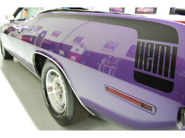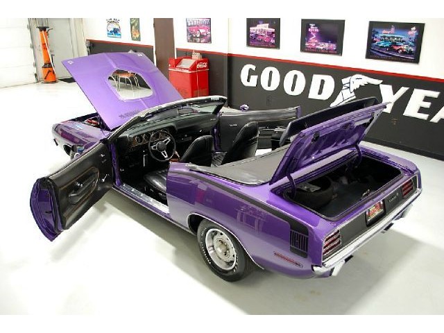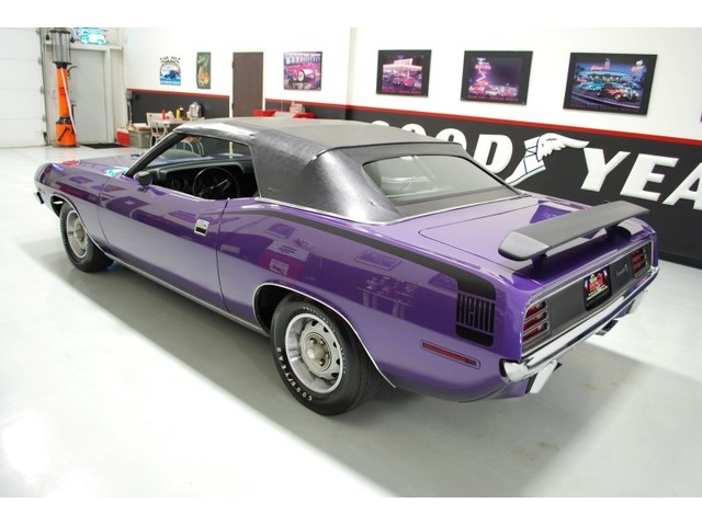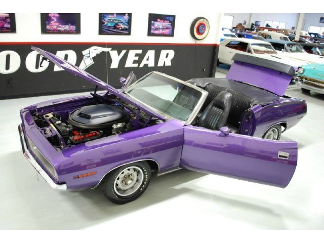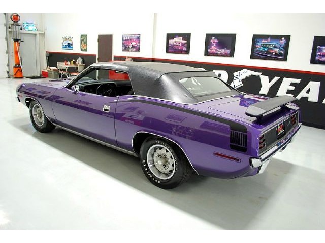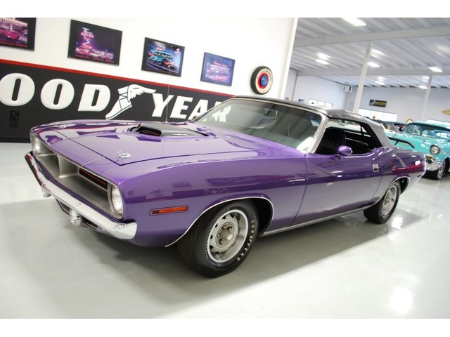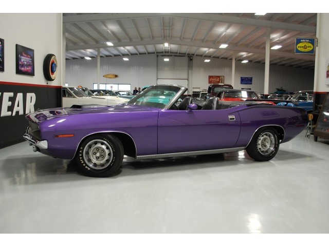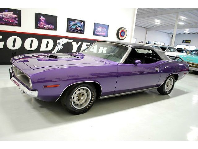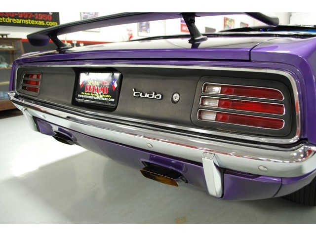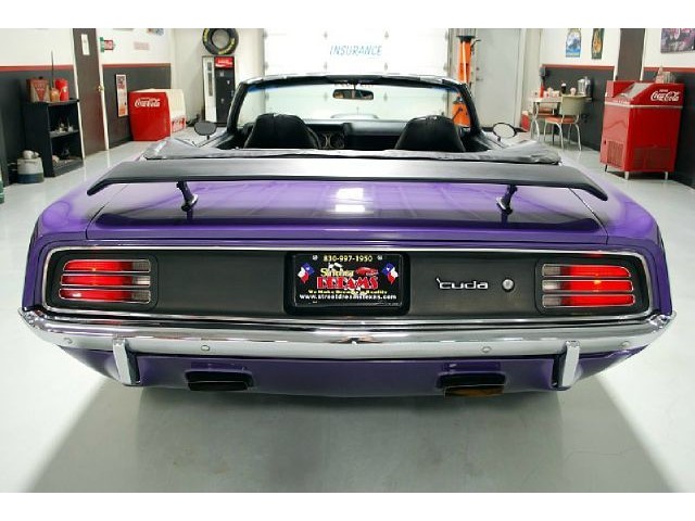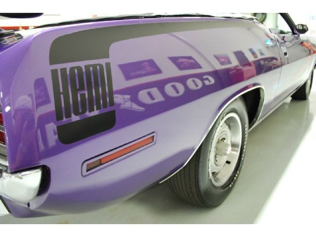 Welcome to streetdreamstexas online auction.  We are celebrating our 15th year in the classic and collector car business.  We strongly feel that investing in a classic car or truck is still one of the safest and most fun places to have your money stored.  You would be Plumb Crazy to pass up the opportunity to ride around in a car some have paid over a million dollars to own over the last several years.  We just saw an original Hemi Cuda convertible bring 3.5 million at Mecum... This Cuda started life as a 383 V-8 big block car but had opportunity to have the period correct Dual Quad Street HEMI installed during the restoration. (why not) The execution was done to a very high standard and the car looks, runs, and dries as authentic as could be. The Shaker hood scoop with the HEMI logo gives it away so you will not surprise anyone at the red light. It has a beautiful body with smooth panels, excellent Violet paint aka Plumb Crazy, terrific chrome, glass, and trim, The fit up is top notch and the car looks correct from every angle. The hockey Stick stripe is subtle but looks so good. Other notable features are a refurbished, smooth shifting 4-speed transmission with new clutch pp & throw-out bearing, correct hood pins, factory style front driving lights, blacked out tail light panel, Go Wing, correct dual exhaust ports, Rally wheels, and period correct reproduction Goodyear Polyglas white letter tires. If you did not know better you would swear it is the rear deal. The immaculate interior features high back bucket seats with leather inserts, console, legendary Pistol Grip shifter, deluxe trim, Rally dash, with tachometer, working AM/FM radio, all covered by a high grain vinyl power top. The refurbished chassis is tight and features power front disc brakes, power steering, and a Sure Grip rear end with 3.55:1 gears. You can argue the value of a clone but this is a very desirable car with the best equipment you could have gotten and it has a real HEMI! Make it yours today and really burn some rubber! Financing, insurance, and delivery are easier that you can imagine.