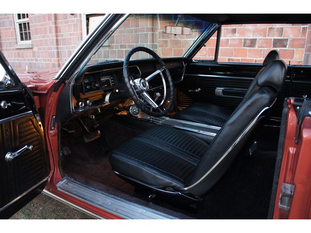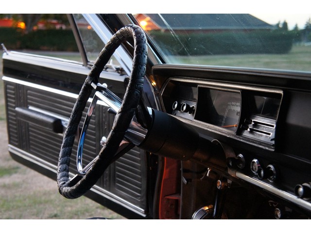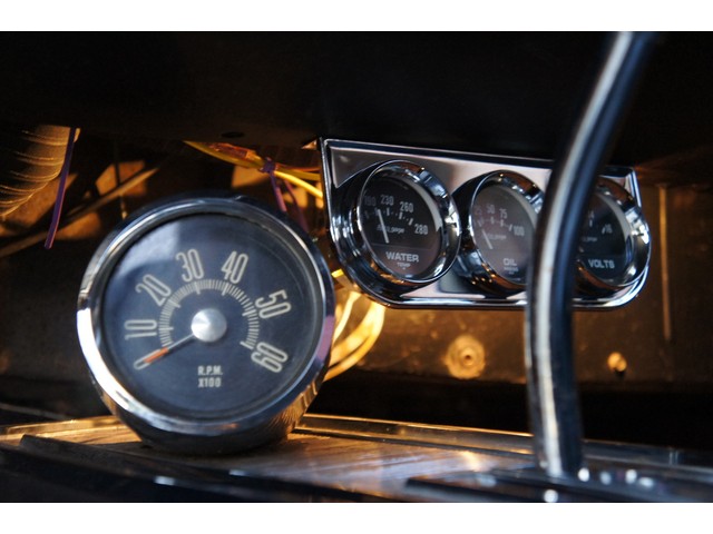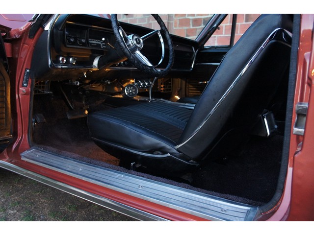 The interior is about all new with new carpets, new seat covers, new headliner and all the interior chrome redone! ($$$) The console and dash are original and still in real good shape. The speedo needs to be reconnected and the gas gauge works only when she is full. The rest of the gauges work. All the lights work as do the wipers and the heater. NICE INTERIOR!