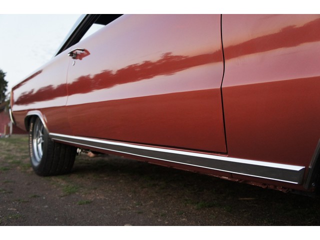 The paint is the original Turbine Bronze Metallic and has been completely repainted with everything taken off the car. SHE GLOWS!! The body is so straight on this car. Looking down the sides it looks as good as you can get. THERE IS ZERO BONDO ON THIS ONE! As straight as you will find. The bumpers have been re-chromed and all the trim is in real good shape.
