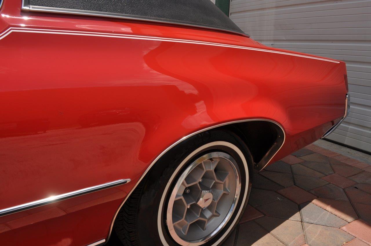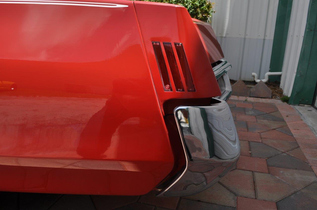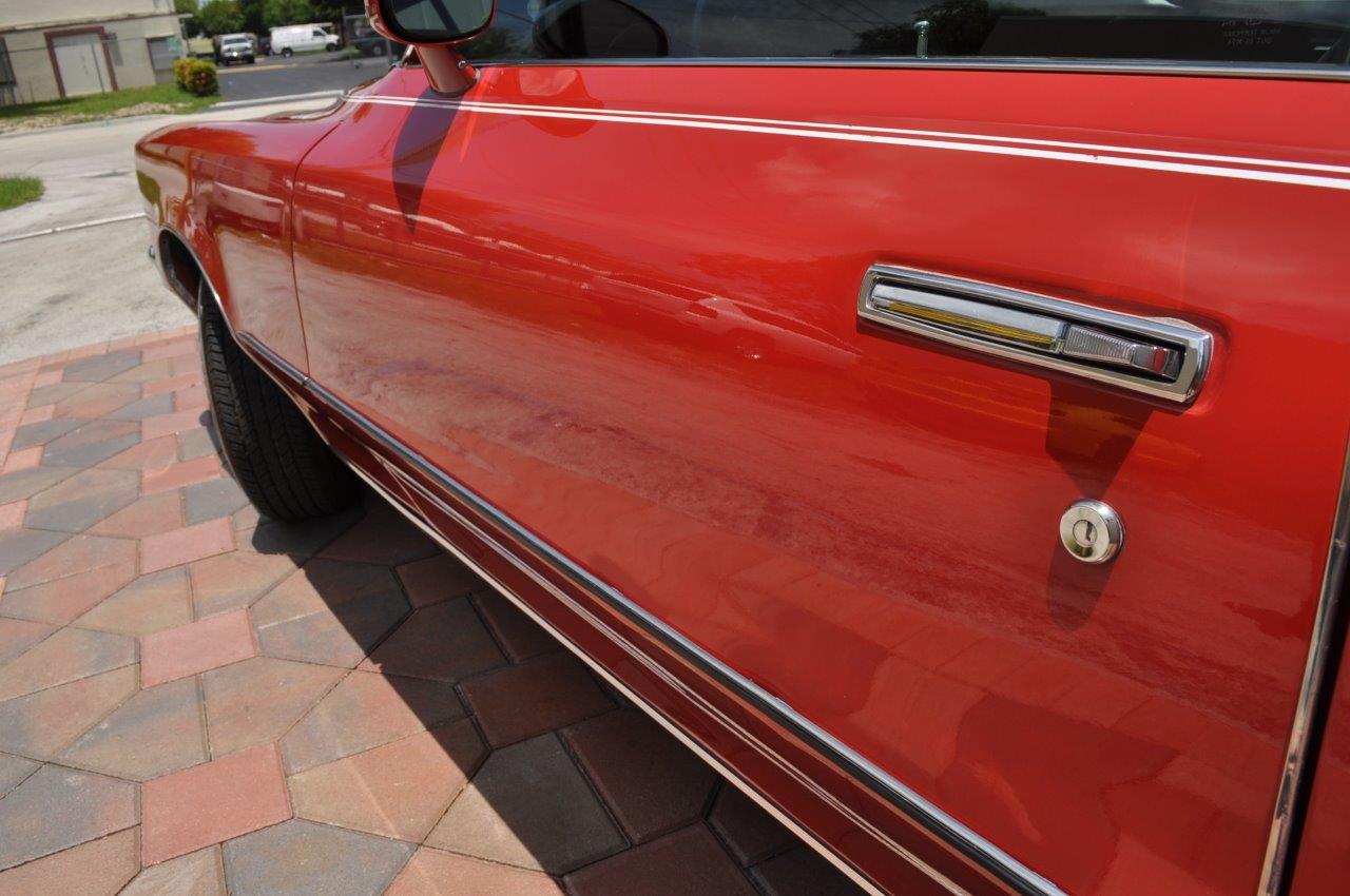 The exterior of the car is original ,  it is definitely single  stage paint and is in excellent condition for the age of  the car, we did not see any rust in this car,  look  at the photos and judge by yourself, it had white  stripping that did not really match the car, we  carefully removed it and apply black stripes. We also installed brand new dual stainless steel exhaust tips. The vinyl top also  in very good condition and all the chrome also excellent  as you will see,  car comes with with its original honeycomb wheels but we are offering  OPTIONAL WHEELS that can be purchase separately , SEE PHOTOS AT  THE BOTTOM OF THE LISTING.