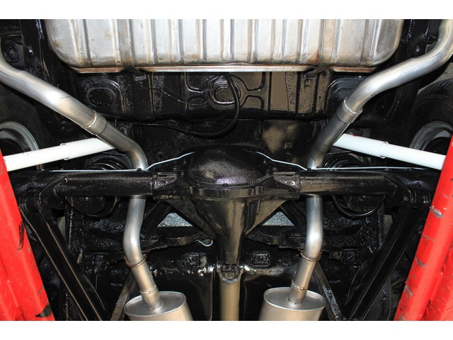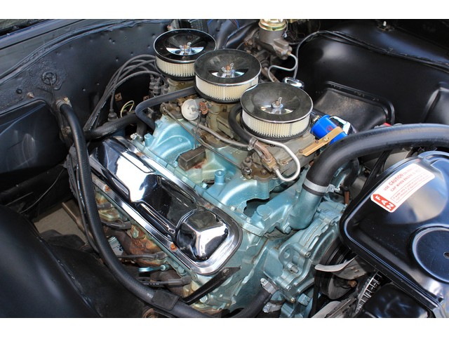 Finally, we will take at the driveline of the Pontiac. Under the hood it looks like it would have in ’66. It has the factory 389 Tri Power with the correct valve covers and breathers. It retains the stock manifolds with dual exhaust. It is all new and clean under the hood and believe it to be all correct. The trans is a 4 Speed with the stock rear end. This GTO has 4 wheel drum brakes and standard steering. The bottom of this GTO is ROCK SOLID with Great floors and frame.