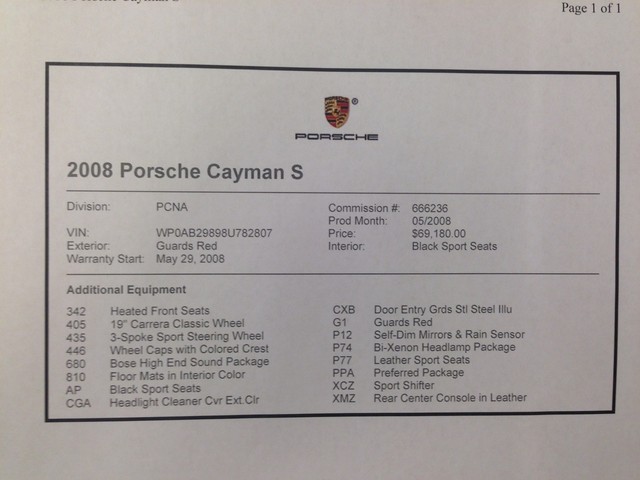 2008 PORSCHE CAYMAN S ONE OWNER LOW MILES CERTIFIED WARRANTY