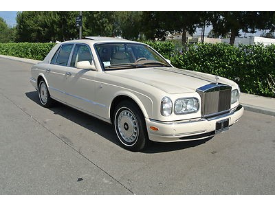 Stunning 2000 Rolls Royce Silver Seraph finished in Magnolia exterior with Magnolia interior and tan trim. Absolutely gorgeous through out. Very well cared for and it shows. Driven only 26,850 pampered miles since new! Dealer serviced with records.  Drives superbly, exterior and interior are near flawless. Comes beautifully optioned with full wood veneered door panels, sunroof, Navigation, park senors, umbrellas, heated and power front and rear seats, rear tables, veneered rear vanity mirrors, RR floor mats, books, clean Car-Fax and so much more. Shown by appointment only. Buy with confidence from a Rolls Royce and Bentley Specialist! Classic Motor Inc. Rolls Royce and Bentley Sales and Service (818)988-1045 pt. MANY MORE ROLLS ROYCE AND BENTLEYS IN-STOCK NOW. SERIOUS BIDDERS ONLY PLEASE!