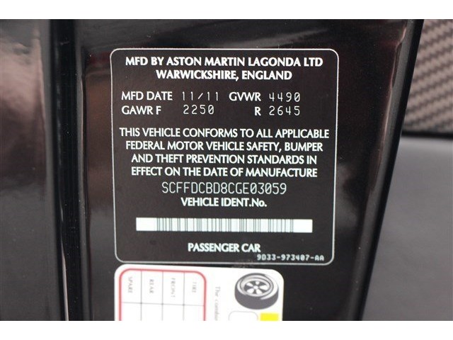MOTORCARS OF GEORGIA IS PROUD TO PRESENT AN IMMACUALTE, 1-OWNER 2012 ASTON MARTIN DBS CARBON EDITION COLORED IN AML CARBON BLACK EXTERIOR OVER OBSIDIAN BLACK INTERIOR.  THE CARBON EDITION DBS OFFERS EXTENSIVE CARBON FIBER FEATURES APPOINTED THROUGHOUT INCLUDING THE DISTINCTIVE CARBON FIBER FACIA.  THE DBS IS ASTON MARTINS ULTIMATE GT SPORTS CAR OFFERING AESTHETIC PURITY, EXQUISITE INTERIOR AND A DRIVING EXPERIENCE THAT IS UNMATCHED.