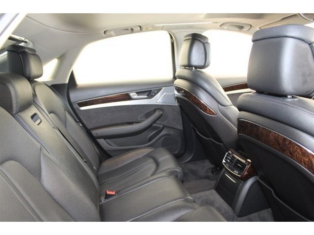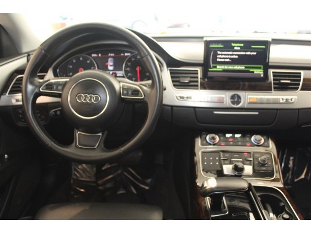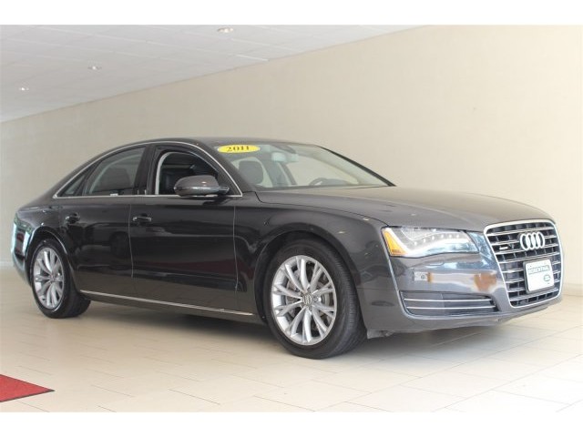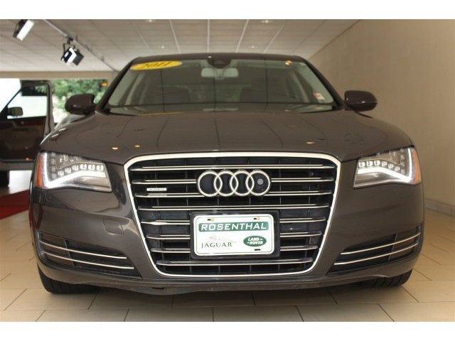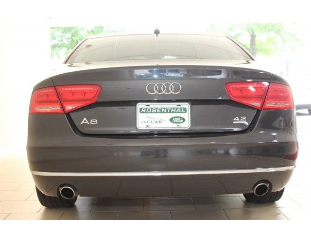 With an Original MSRP of $87,575, This is a steal! Carfax One Owner Audi A8 4.2 Quattro, Oolong Gray LOADED with NIGHT VISION!! The Premium Package adds 22-way climate controled front seats, Wood decrative inlays on the front seatbacks, FULL LED headlight package, Convenience Package with keyless entry, power open and close trunk, and Audi Parking system plus with Rearview camera. Eight speed transmission paired to a 372 Horsepower engine leads to a fast, nimble and comfortable ride. Quattro keeps you out of trouble with all wheel drive, especially in the winter months. 19 allows, speed sensitive steering, adaptive air suspension and ESP stabalization are all standard. Audi MMI Navigation plus system with MMI touch, multi media interface with retractable screen, Bluetooth, Homelink, Bose Surround System and iPod integration are also included. Still under FULL AUDI FACTORY WARRANTY and ready to go. Will not last long, so call or stop by, and we look forward to further assisting you. Thanks for considering Rosenthal Land Rover Jaguar.