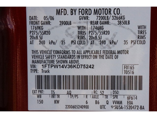 • VIN: 1FTPW14V36KD75242