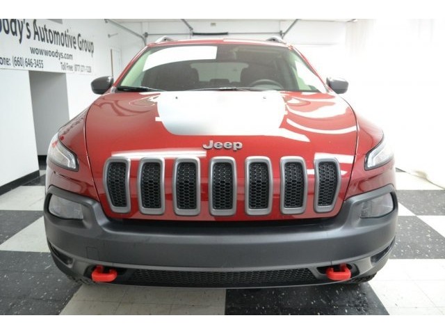 One Owner! 2014 Jeep Cherokee Trailhawk 4x4 3.2L V6 Uconnect 8.4AN AM/FM/HD/BT/Navigation, Leather & Heated Seats, Tow Package, Alloy Wheels, Roof Rack, Tow Hooks, Leather & Heated Steering Wheel, Bluetooth Streaming Audio, Uconnect Access, USB Port, Certified Warranty. 4 Wheel Drive! Red Hot! If you want an amazing deal on an amazing SUV that will keep you smiling all day, then take a look at this fun 2014 Jeep Cherokee. This fantastic Cherokee is a joy to push through the corners on a sunny day, or just putt lazily around town.Price includes $500 instant rebate when financed through a Woody's Lender.Want a custom video? Just text your first & last name and the stock# to 660-247-5319.This vehicle's stock# is 14E821-479 |Check out www.woodyswow.com to see why we're different! Woody's is an Honest, Up-Front, One Price Dealership selling new & used cars in the greater Kansas City area. Check out what over 2000 customers are saying at over2000reviews.com When it comes to Price, we're third party verified among the lowest In The Nation! This vehicle is certified with a **Pre-Owned Warranty** at no cost to you!Not sure which vehicle you want? With the largest 10AcreMegaLot and most diverse inventory in Middle America you can view all makes in one location! Check out our website to see 800+ vehicles, 50+ Pictures, Videos, Free History Reports and more! www.wowwoodys.com You can search by payment, get a trade appraisal, and setup financing all at www.megawoodys.com now or just call us toll free at (888) 881-0393 to schedule a test drive.The majority of our vehicles qualify for Woody's Assurance Program which includes a 12 Month Return Policy, Limitations Apply, See Dealer for Details.Some of our customers say, Help me find a car or just find me a car We can find you any used car, used truck, used suv. Plus, We will pick you up at the airport or ship your vehicle to you! Our award winning Finance Management Team works with over 15 local and national banks to get you the best rate and term. If you would like to save time just visit our www.wowwoodys.com website to access our Trade Appraisal Tool and Online Secure Credit Application. We also offer an online payment calculator so you can setup different down payment/monthly payment options.[Image]Used Car Special
