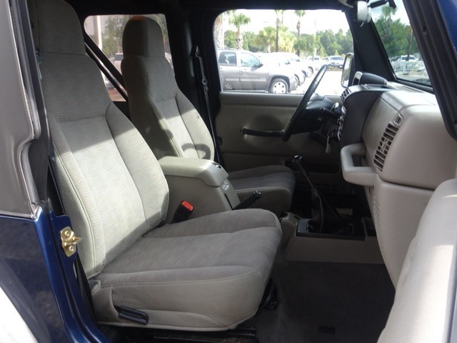 New Arrival! 4-WHEEL DRIVE. VALUE PRICED BELOW THE MARKET! This 2005 Jeep Wrangler X has a sharp Blue exterior and a super clean Gray interior! Our vehicles are value priced and move quickly. Be sure to call Ken to confirm availability and to schedule a hassle free test drive! We are located at: 24252 State Road 54, Lutz, FL 33559. The options and features include: Driver Seatbelt w/Constant Force Retractor, Front & Rear 3-Point Seatbelts, LATCH Child Seat Anchor System, Next Generation Driver & Front Passenger Airbags, 12-Volt Auxiliary Power Outlet, 4-Speaker Audio System, AM/FM Stereo w/Compact Disc Player, Cargo Tie Down Loops, Cloth Upholstery, Door Trim Panels w/Map Pockets, Driver & Front Passenger Tip-And-Slide Seats, Fold & Swing Sun Visors, Fold-And-Tumble Rear Seat, Heater w/Instrument Panel Ventilation, Height-Adjustable Steering Column, High-Back Reclining Front Bucket Seats, Locking Storage Bin, Manual Day/Night Interior Rearview Mirror, Mini-Floor Console w/Cup Holders, Oil Pressure & Temperature Gauges, Padded Sport Bar, Fold-Away Manual Exterior Mirrors, Fuel Tank & Transfer Case Skid Plates, Soft Easy-Folding Top, Tinted Rear Quarter & Liftgate Glass, Tinted Windshield Glass, Variable Intermittent Windshield Wipers, Command-Trac Part-Time 4-Wheel Drive, Engine Compartment Light, Power Front Disc/Rear Drum Brakes, Power Recirculating Ball Steering, Tachometer