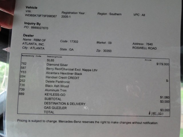 SL65 AMG DIAMOND/BERRY RED MSRP (orig) $186,060....NO RESERVE!!!! BID TO WIN!!