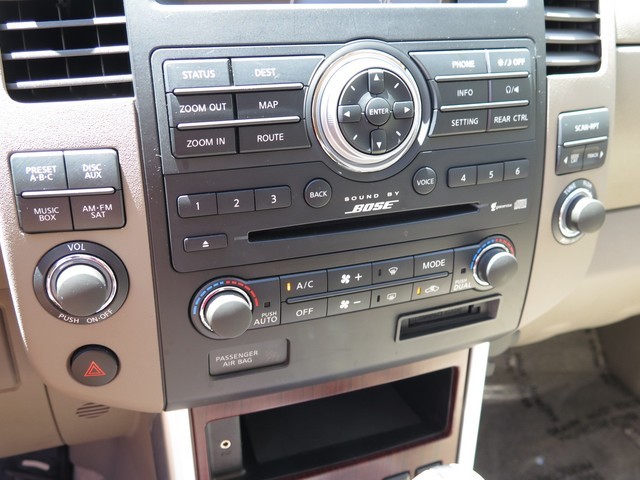 1-OWNER, CLEAN CARFAX HISTORY REPORT, FACTORY WARRANTY REMAINING, NAVIGATION, BACK UP CAMERA, BLUETOOTH HANDS-FREE, Leather Upholstery, 3 Zone climate control, Bose AM/FM/CD Stereo, 3rd row seats, Power front heated front seats with driver memory settings, Homelink settings, Running boards, Rear tow package, Remote keyless entry, 4 wheel drive and more! Please contact us with any questions. The options and features include: Driver/Front Passenger Frontal Airbags, Front Seat-Mounted Side Airbags, HomeLink Universal Transceiver, Side Curtain Airbags, Vehicle Immobilizer & Security System, 10-Speaker Audio System, Bluetooth Hands-Free Phone Capability, Bose AM/FM/6-CD Stereo, Digital Clock, Dual Memory Driver Seat/Mirrors, DVD Navigation System, Heated Steering Wheel, Leather Upholstery, Manual Day/Night Rearview Mirror, Manual Tilt Steering Wheel, Power Adjustable Foot Pedals, Power Door Locks w/Auto-Locking, Power Heated Front Seats, Power Window Lockout Button, Power Windows w/One-Touch Up/Down Front, Rearview Monitor, Steering Wheel-Mounted Cruise Control, Halogen Front Fog Lights, Nissan Intelligent Key, One-Touch Power Moonroof w/Tilt, Power Exterior Mirrors, 4-Wheel Anti-Lock Disc Brakes, Electronic Brake Force Distribution, Speed-Sensitive Rack & Pinion Steering, Tire Pressure Monitoring System, Traction Control System, Vehicle Dynamic Control