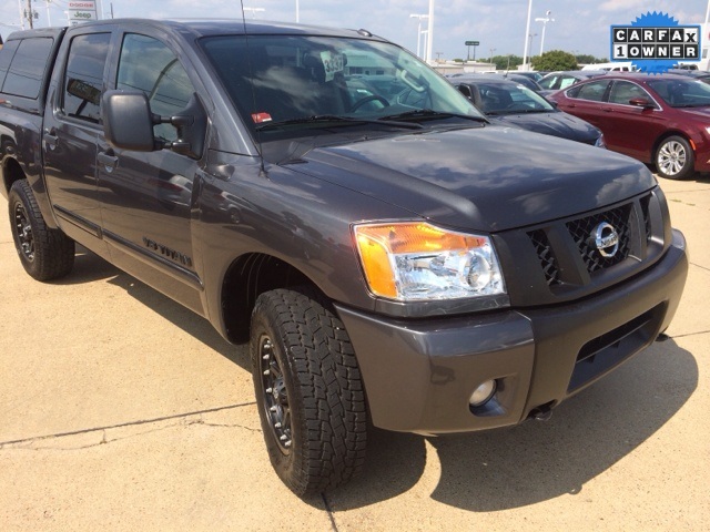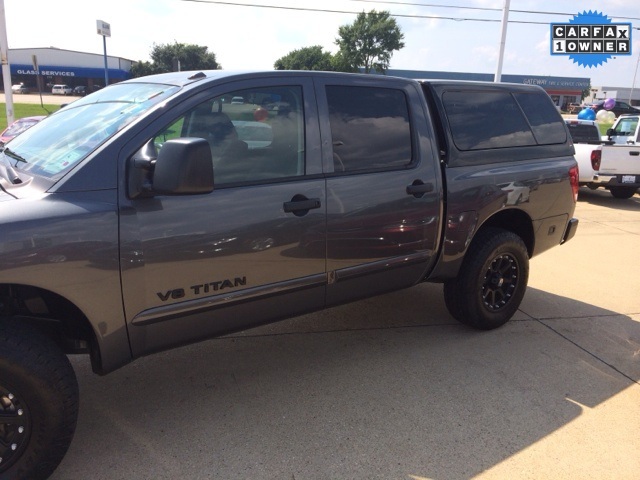One Owner, Endurance 5.6L V8 DOHC 32V, and 4WD. This 2010 Nissan Titan SV 4X4 is packed with features such as Camper Shell, 8 Speakers, AM/FM/CD Audio System, 2.937 Axle Ratio, 40/20/40 Split Bench Front Seat, 4-Wheel Disc Brakes, ABS brakes, Air Conditioning, Alloy wheels, Anti-whiplash front head restraints, Bodyside moldings, Brake assist, Bumpers: chrome, CD player, Driver door bin, Driver vanity mirror, Dual front impact airbags, Dual front side impact airbags, Electronic Stability Control, Front anti-roll bar, Front Center Armrest w/Storage, Front reading lights, Front wheel independent suspension, Illuminated entry, Low tire pressure warning, MP3 decoder, Occupant sensing airbag, Outside temperature display, Overhead airbag, Overhead console, Panic alarm, Passenger door bin, Passenger vanity mirror, Power door mirrors, Power steering, Power windows, Radio data system, Rear seat center armrest, Rear step bumper, Rear window defroster, Remote keyless entry, Security system, Speed control, Speed-sensing steering, Speed-Sensitive Wipers, Split folding rear seat, Tachometer, Tilt steering wheel, Traction control, Trip computer, Variably intermittent wipers, and Voltmeter. This terrific Titan is a durable truck you can live with and enjoy every single day of the year. Call us at (888)718-8238 or visit us online at www.hebertstandc.com 24/7 for great internet deals!
