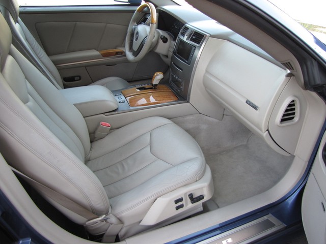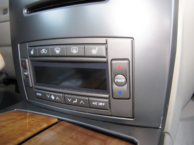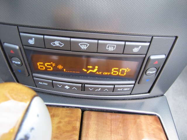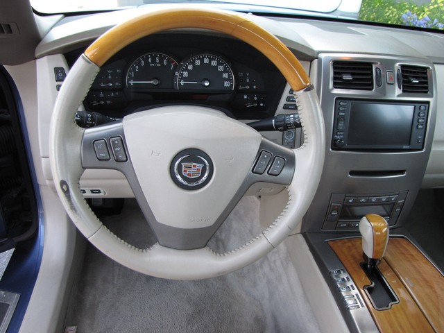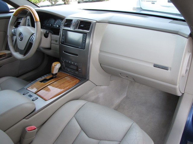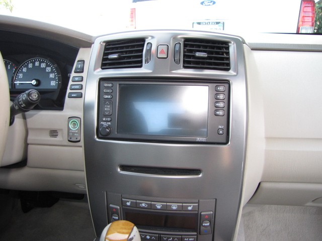 Interior wise, the car looks very nice. Seats are in excellent shape and leather is soft, no rips or holes to worry about. Driver seats is power and both seats are 6 way power seats with lumbar and bolster controls and are heated as well. Carpeting is in good shape overall, no holes and has a set of original floor mats with Cadillac emblem. Center arm rest is clean and latches perfectly. Dash looks excellent as well as plastic center console. Has Navigation/CD in dash that is working great. Steering wheel has a small wear spot as seen in photos. Wood paneling is in good condition on center console. Cup holder door hinges are broken. Everything works inside. Overall interior in good condition, no odors whatsoever. Has Lojack and onstar with one Key fob remote and one chipped key.