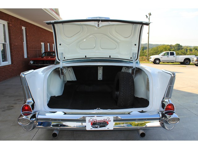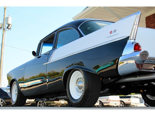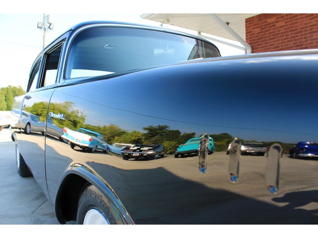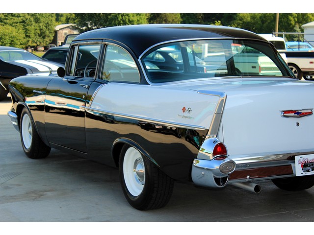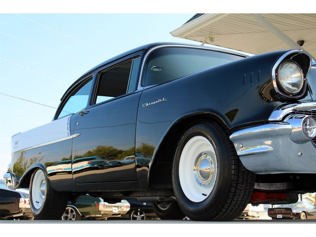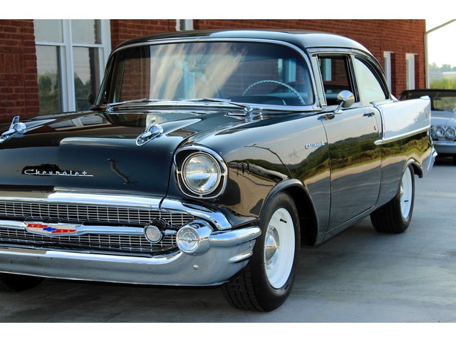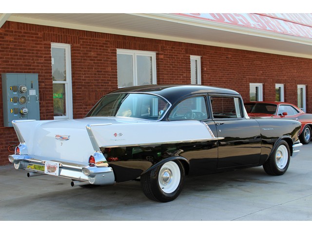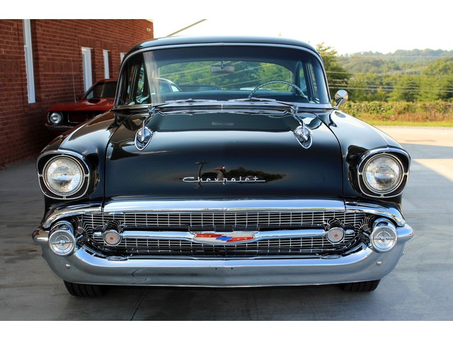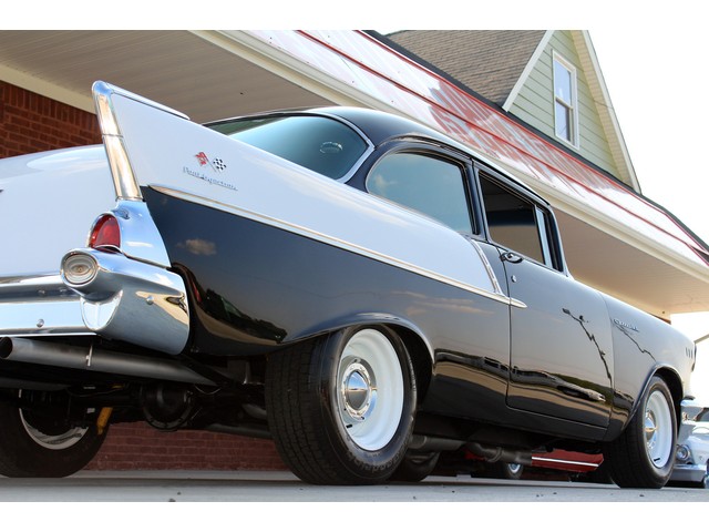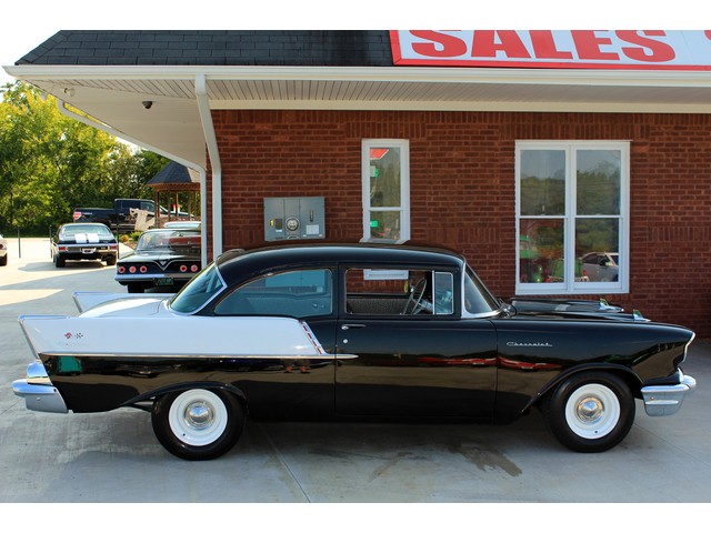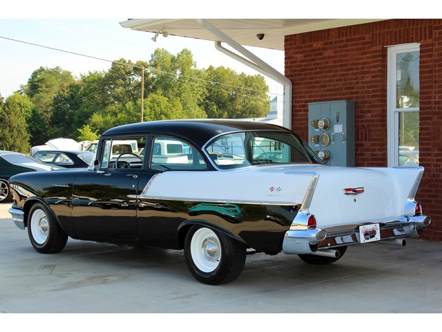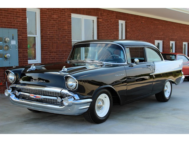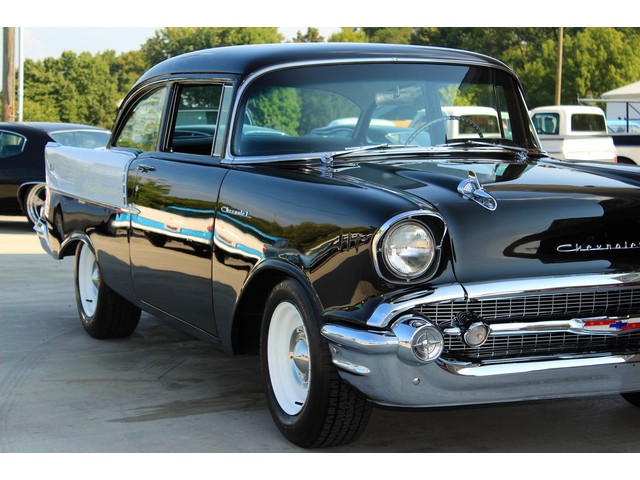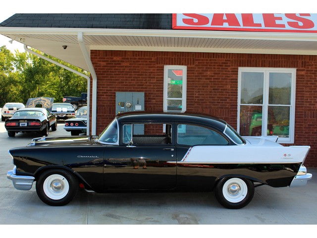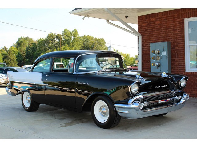 Up for sale we have a 1957 Chevy Black Widow clone. In 1957 Chevy took their base car, the 150, and built a factory race car. It had a small block with Fuel Injection. There was not many made, some say only 411. For Nascar they took the Fuel Injection off and installed a 4 barrel carb. The one we have for you is a very nice clone that is a great driver. In the paragraphs to follow we will give a brief description of the exterior, interior, and heartbeat of the Chevy, but first we would like to tell you a little about us.