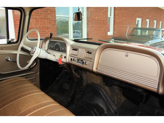 Next, we will take a look at the interior of the ’62. Everything on the inside is all new and done in the stock style. The seat is covered in vinyl. As for the dash and the metal trim it’s painted in beige that provides a nice complement to the exterior. The Steering column and instrument cluster, however, is painted in white that flows the exterior and interior together nicely.