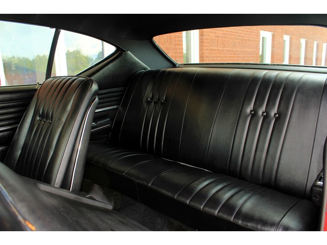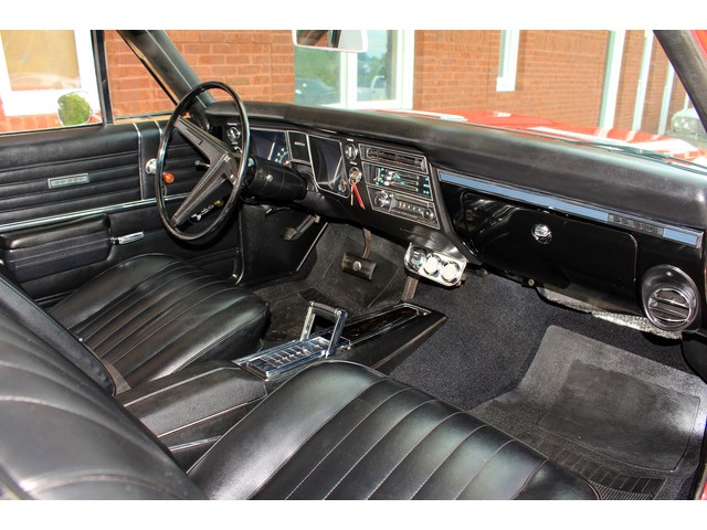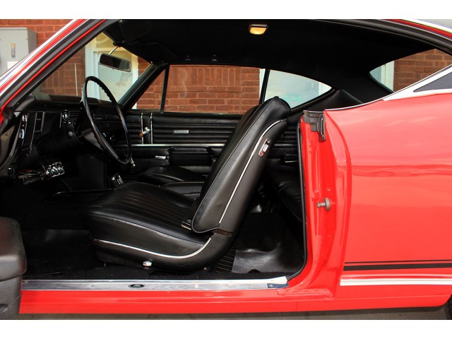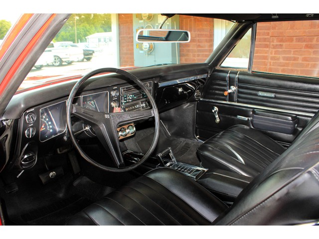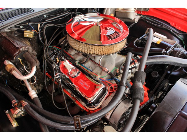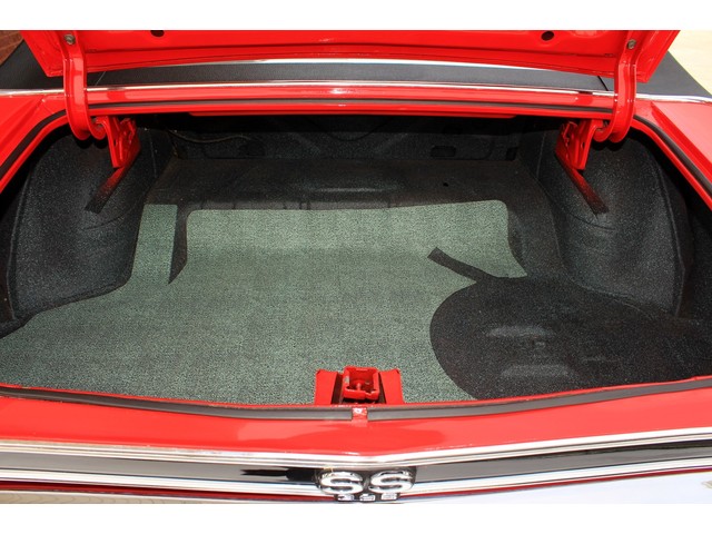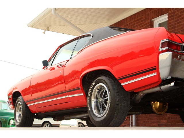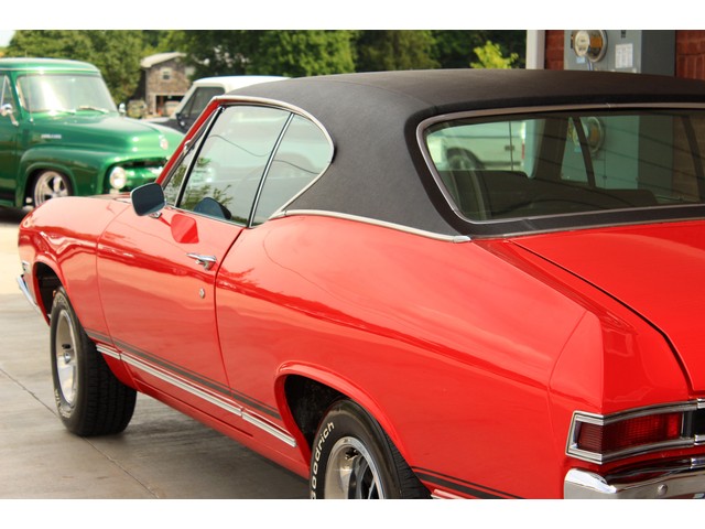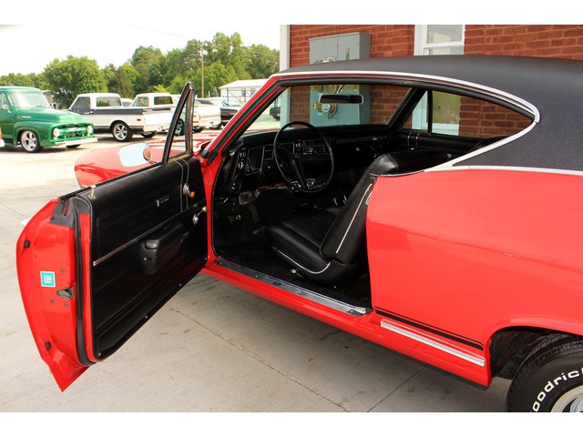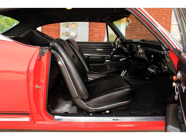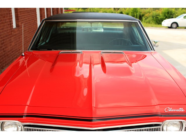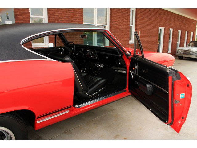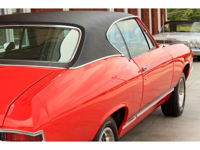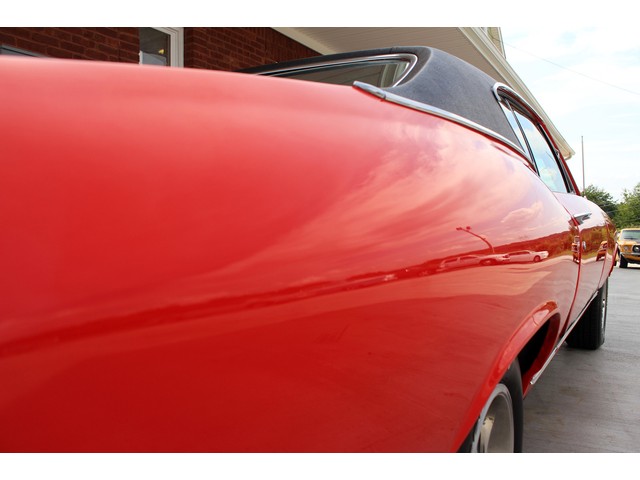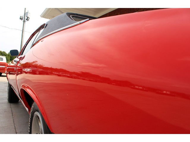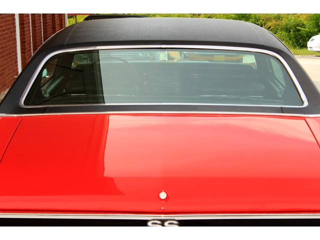 We will start off with the exterior of the Chevelle. When you walk around it you will have a hard time finding something to pick at it. It has a laser straight body with good fit of the panels. Everything is covered in the Matador Red Paint that is accented by the Black SS Stripes and Black vinyl top. The paint is very nice with a deep rich shine and is slick to the touch. They did a great job on all the jams and even under the hood looks good as well. The bumper as well as other chrome looks like new. When you look at the glass and stainless it looks good as well. At the time of the resto they replaced all the weather stripping and seals. The finish off the look it’s sitting on a set of BFG Tires on Stock SS Wheels.