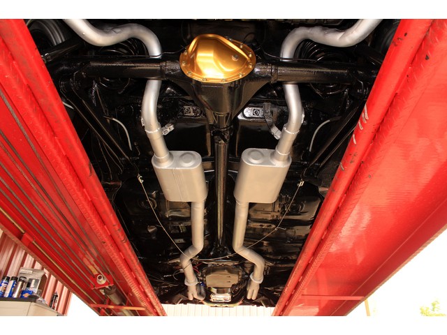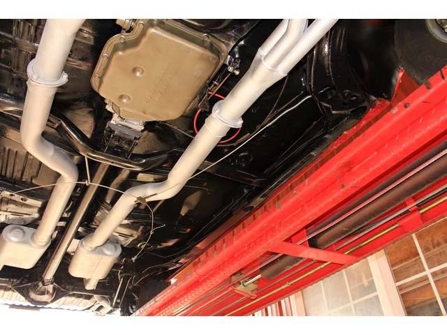Next, we will take a look at the interior of the ’68. Everything on the inside is done in the classic black that flows beautifully with the exterior scheme. It all looks new with the correct bucket seats and cnsole with the horse shoe shifter. When you look at the dash it’s slick with a new pad. It has the stock AM radio that still works. They did add a set of Aftermarket gauges under the dash and the dome lite is working.