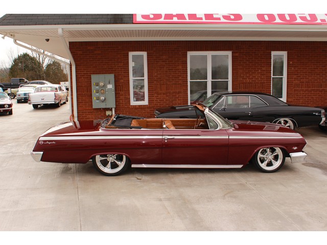 Up for sale we have a 1962 Chevy Impala Convertible. In ’62 Chevy gave the Impala a new look with a new grill and tail panel. The one we have for you may be one of the nicest ones you will find. It’s been rebuilt from the front to back and top to bottom. In the paragraphs to follow we will give a brief description of the exterior, interior, and heartbeat of the Chevy, but first we would like to tell you a little about us.